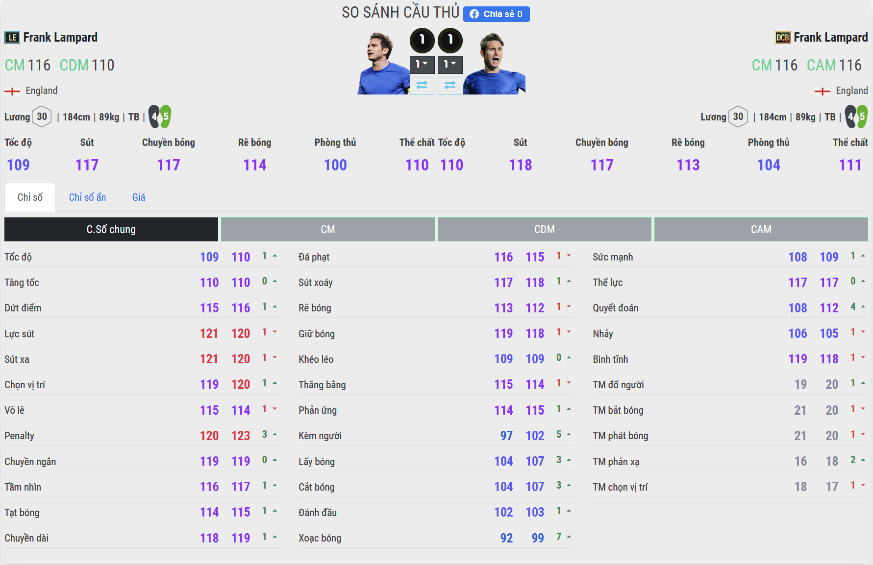 Lampard chưa bao giờ nổi tiếng nhờ tốc độ, nhưng sự khác biệt giữa hai mùa này vẫn rất rõ. Mùa DCB mang lại cảm giác nhanh nhẹn và linh hoạt hơn đáng kể so với LE, đặc biệt là ở những pha di chuyển không bóng và phản ứng khi băng vào vòng cấm. DCB xử lý chuyển hướng mượt hơn, giúp anh hòa nhập tốt với lối chơi nhanh, áp sát hiện đại. Trong khi đó, LE vẫn mang nét “cổ điển” hơn — hơi chậm trong những pha bứt tốc ngắn, nhưng duy trì được sức bền và sự ổn định khi di chuyển ở trung tuyến. Với người chơi thích Lampard hoạt động năng động và linh hoạt hơn ở giữa sân, DCB chắc chắn là lựa chọn vượt trội.