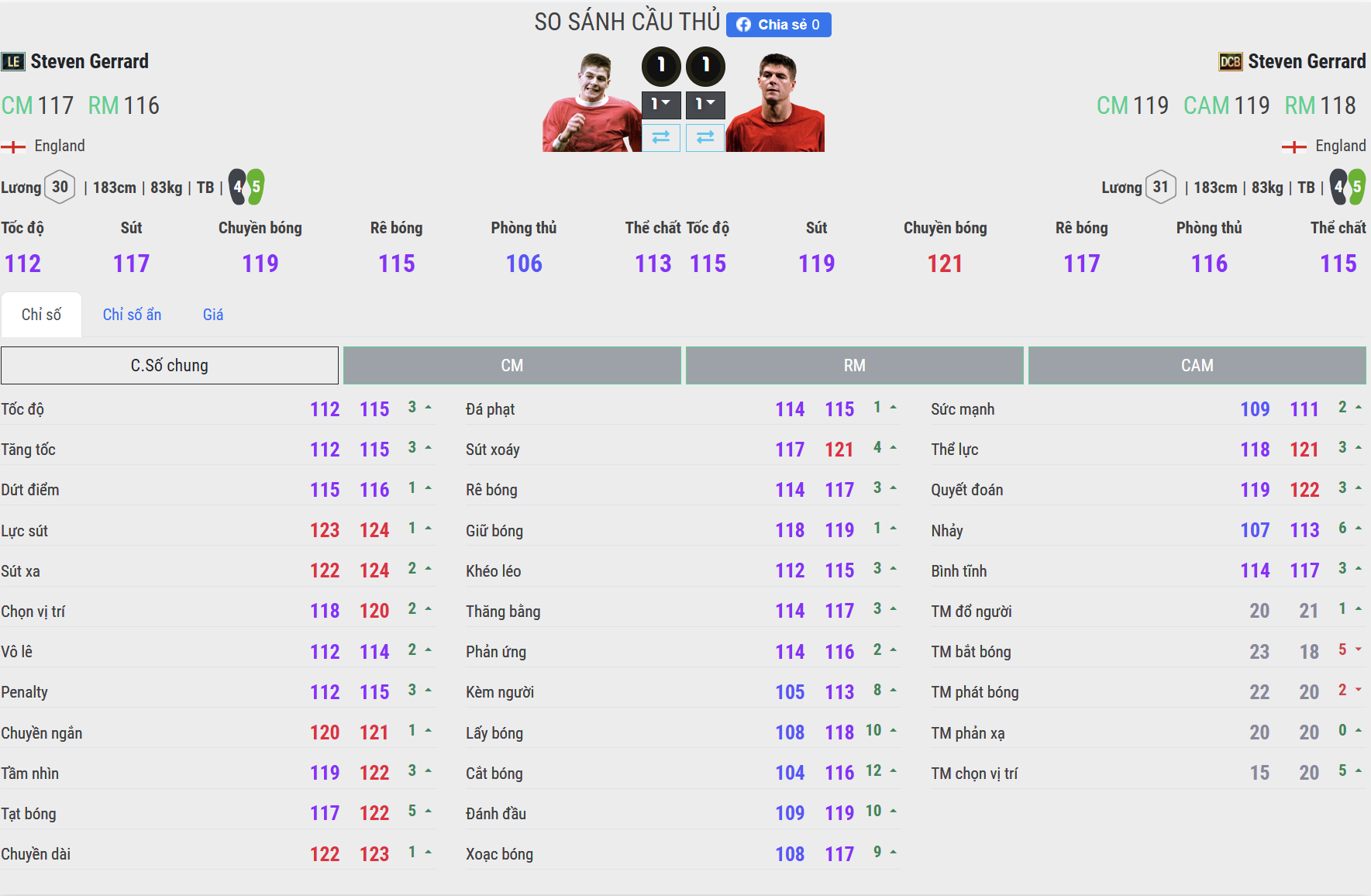 Gerrard mùa LE thể hiện đúng hình ảnh tiền vệ cổ điển: tốc độ ở mức khá, bứt tốc không quá đột biến nhưng di chuyển có chủ đích và thông minh. Anh thường chọn vị trí hợp lý hơn là chạy nhanh, phù hợp với lối đá kiểm soát và phát động tấn công từ xa. Trong khi đó, mùa DCB được nâng cấp rõ ở tốc độ lẫn tăng tốc, giúp Gerrard hoạt động linh hoạt hơn ở khu trung tuyến, đặc biệt trong các pha phản công nhanh hoặc khi pressing tầm cao. DCB cho cảm giác nhanh nhẹn, cơ động và hợp với meta tốc độ hơn hẳn, dù vẫn giữ nét “đầm” đặc trưng của Gerrard.
