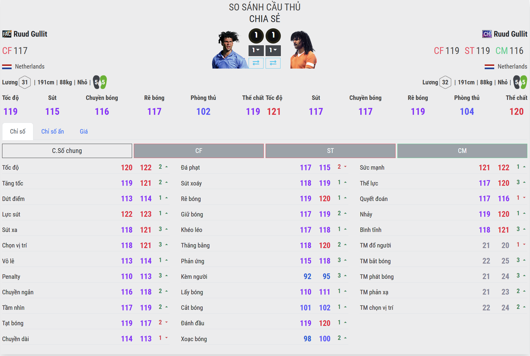 CH thanh thoát và bứt tốc tốt hơn, FAC đủ dùng nhưng kém sắc. FAC mang lại cảm giác Gullit di chuyển khá ổn so với thể hình 1m91: không chậm, không ì, đủ để lên công về thủ. Tuy nhiên, khi cần bứt tốc vượt qua tiền vệ đối phương hoặc đua quãng dài, anh chưa thực sự “thoát người”. CH cải thiện rõ khả năng tăng tốc ban đầu. Những pha kéo bóng từ giữa sân, vượt qua lớp pressing đầu tiên cho cảm giác gọn và dứt khoát hơn. Trong meta đề cao chuyển trạng thái nhanh, CH linh hoạt hơn FAC.