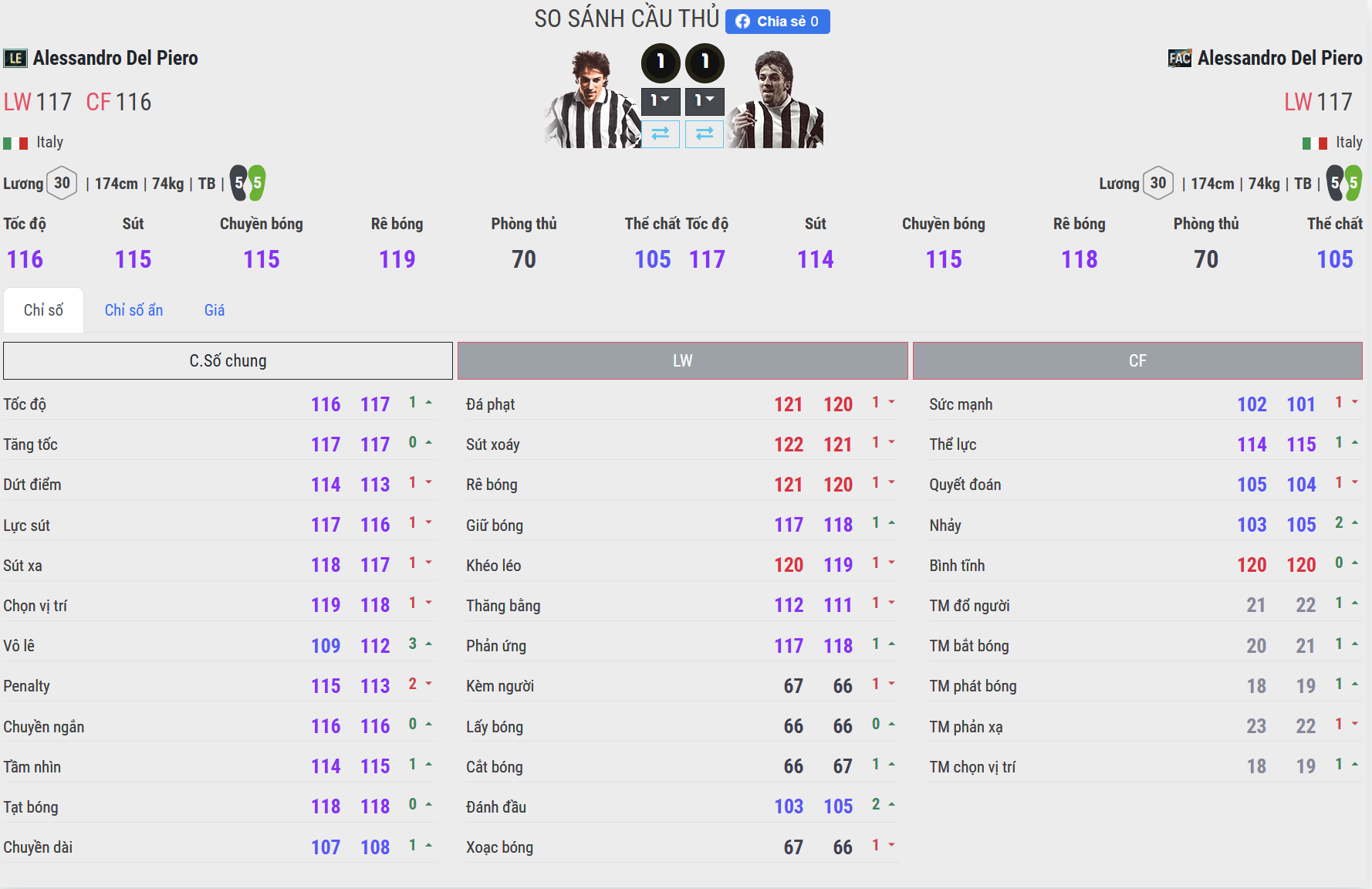 Đây là điểm làm nên thương hiệu Del Piero. Ở mùa FAC, những cú cứa lòng chân phải từ rìa vòng cấm vẫn rất “ra chất” – bóng đi cong, găm góc xa và tạo cảm giác rất nghệ sĩ. Tuy nhiên, đôi lúc độ ổn định chưa thực sự cao khi dứt điểm trong tư thế bị áp sát. LE nâng cấp rõ rệt về độ tin cậy. Khả năng sút một chạm, volley hay dứt điểm trong vòng cấm đều cho cảm giác chắc chân hơn. Những tình huống bóng bật ra tuyến hai, LE xử lý gọn và găm bóng uy lực hơn FAC. Nếu xét về hiệu suất ghi bàn thuần túy, LE nhỉnh hơn.