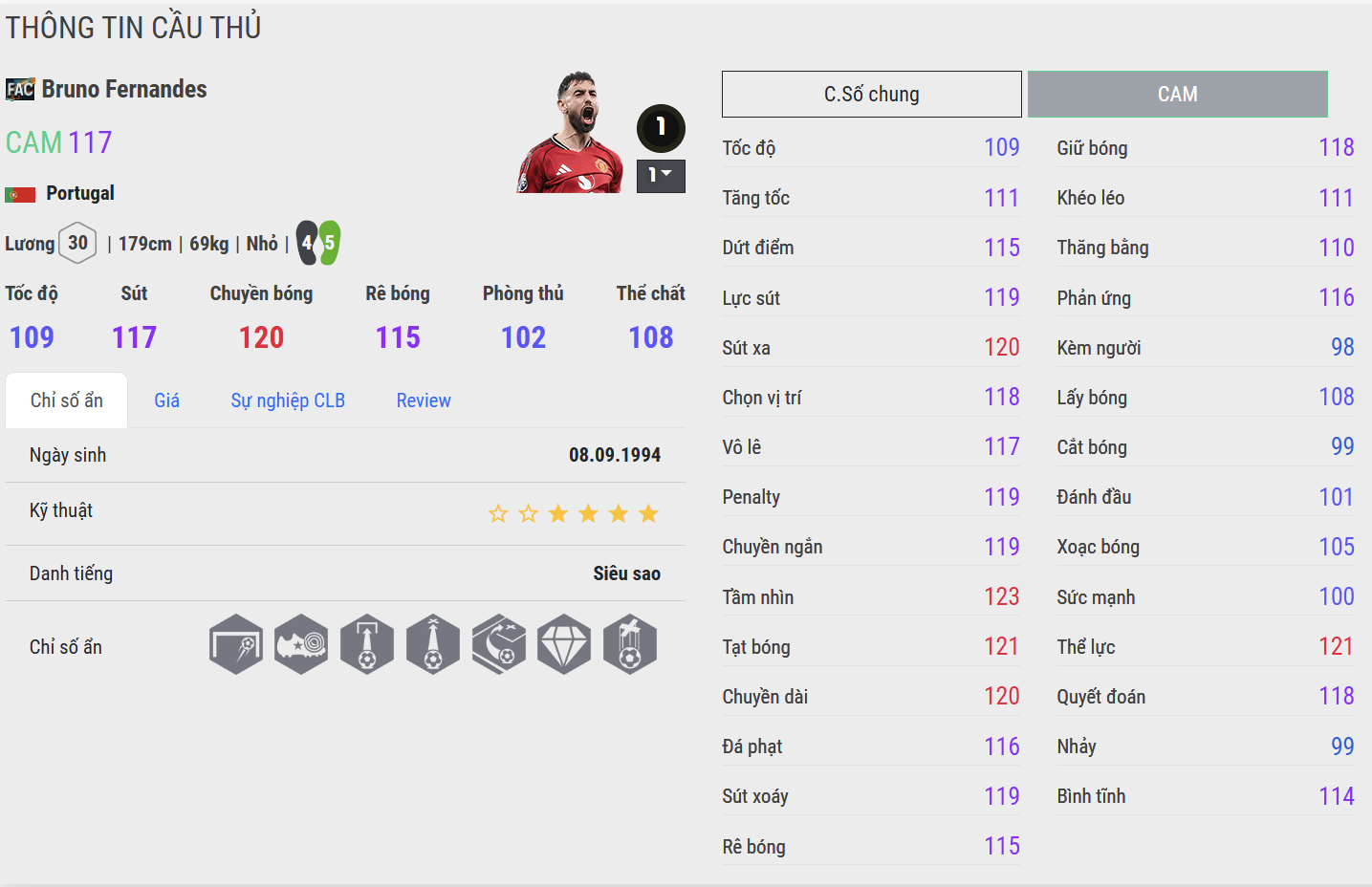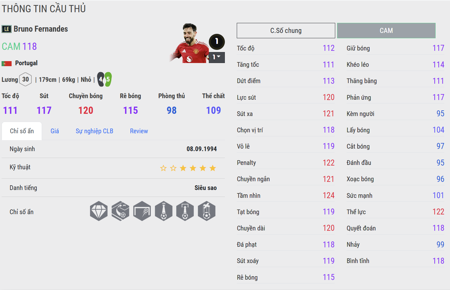 Bruno Fernandes là mẫu tiền vệ tấn công giàu năng lượng và sáng tạo, nổi bật với tinh thần thi đấu máu lửa cùng khả năng tạo đột biến cao. Anh thường đảm nhiệm vai trò “nhạc trưởng” ở khu vực trung lộ, nơi có thể phát huy tối đa nhãn quan chiến thuật và những đường chuyền quyết định.
