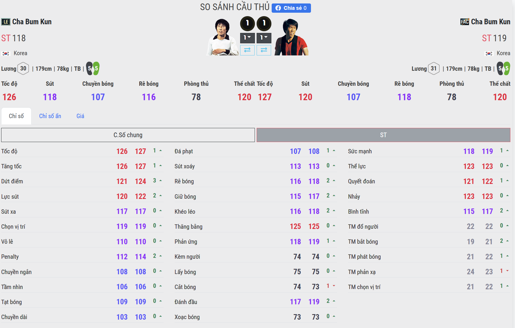Cha Bum-kun FAC có tốc độ rất ấn tượng. Khả năng bứt tốc đoạn ngắn và chạy chỗ phía sau hàng thủ tạo ra áp lực lớn, đặc biệt trong các tình huống phản công nhanh. Cha Bum-kun LE chậm hơn đôi chút nhưng giữ được nhịp chạy ổn định. Di chuyển thông minh, chọn vị trí tốt giúp LE vẫn khai thác khoảng trống hiệu quả dù không quá bốc.