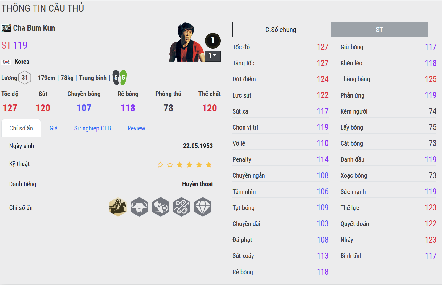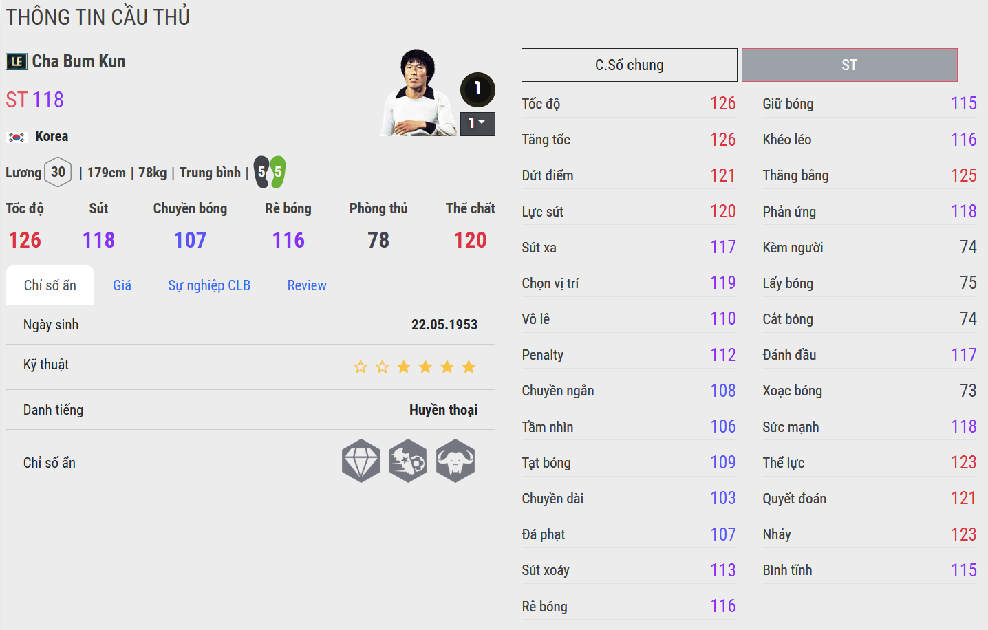 Cha Bum-kun là biểu tượng tiên phong của bóng đá châu Á trên bản đồ bóng đá thế giới, một tiền đạo mang trong mình tốc độ, sức mạnh và tinh thần chiến binh hiếm có. Trong giai đoạn thi đấu tại Bundesliga, Cha Bum-kun gây ấn tượng mạnh với khả năng bứt tốc trực diện, những pha dứt điểm đầy uy lực cùng lối chơi không ngại va chạm trước các hậu vệ châu Âu.