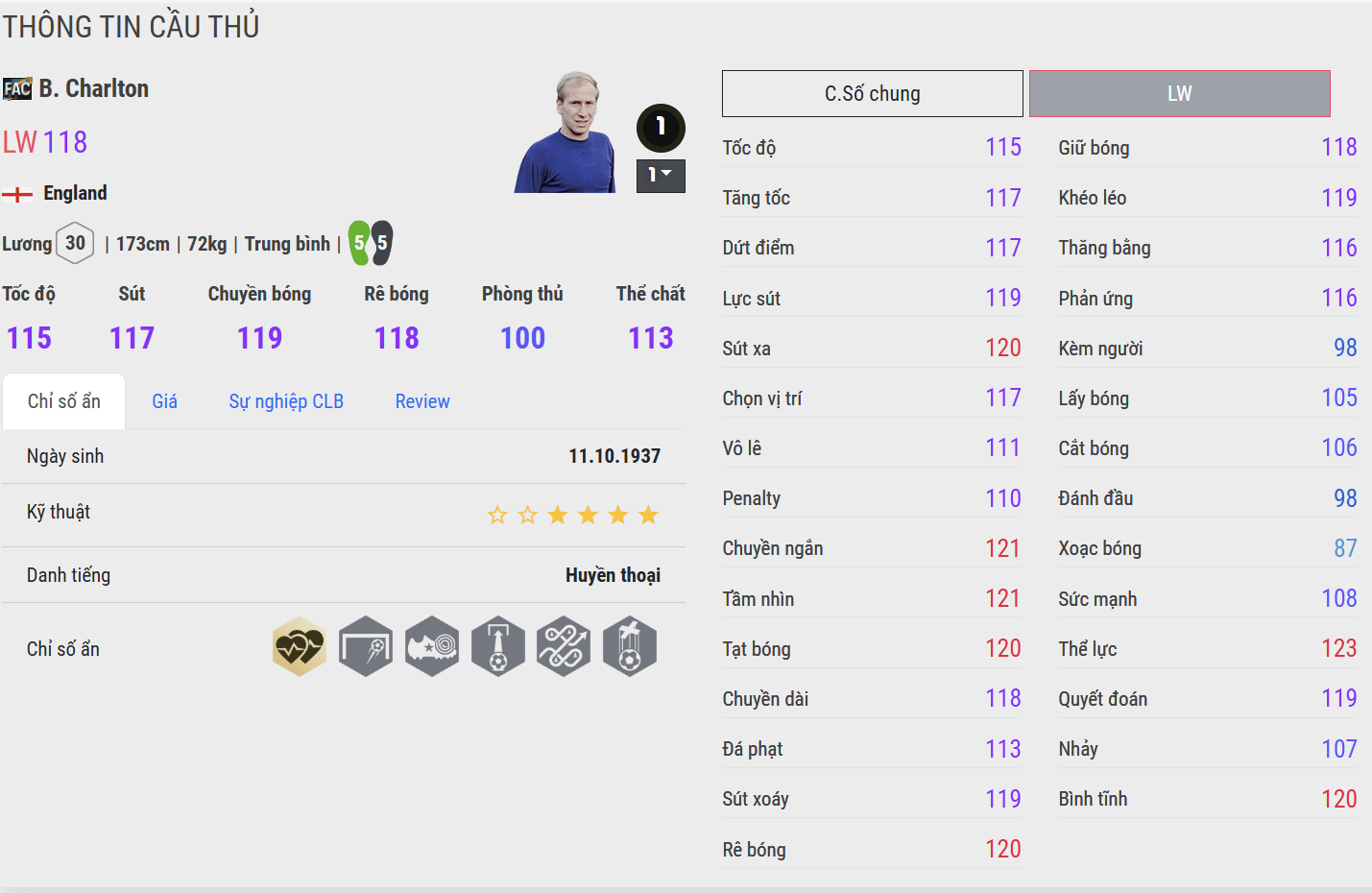 Sir Bobby Charlton là hiện thân của một thời kỳ vàng son trong lịch sử bóng đá Anh – biểu tượng của lòng trung thành, đẳng cấp và tinh thần thể thao thuần khiết. Gắn bó trọn sự nghiệp đỉnh cao với Manchester United, Charlton không chỉ là một tiền vệ tấn công xuất sắc mà còn là linh hồn trong lối chơi của “Quỷ đỏ” suốt nhiều thập kỷ.