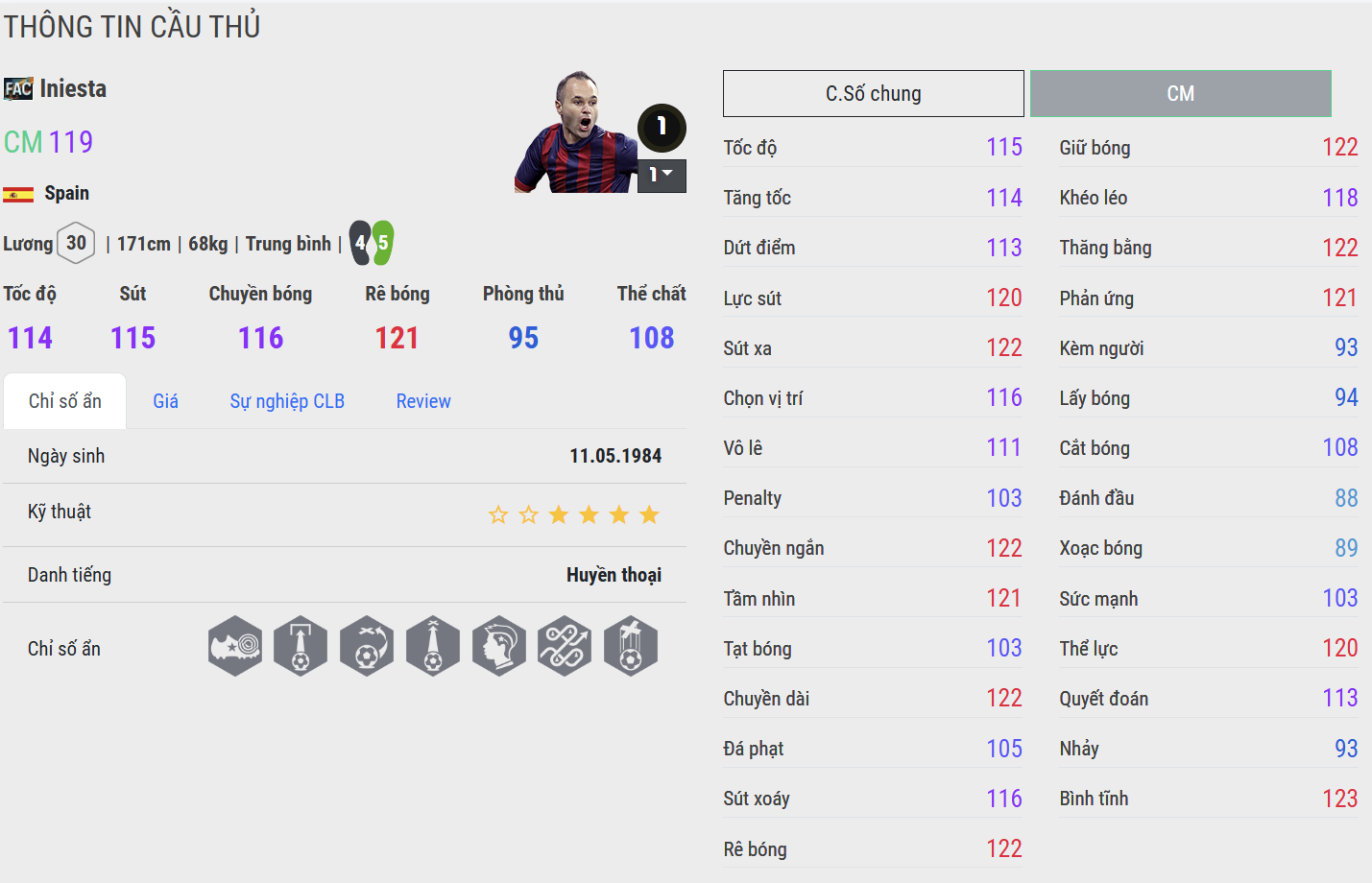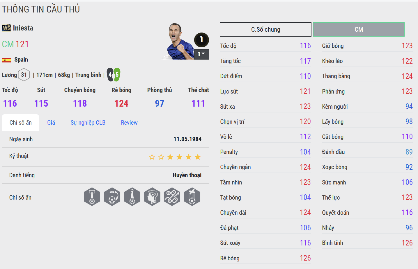 Iniesta FAC rê bóng gọn. Xử lý ít chạm, đổi hướng nhanh, đủ để thoát pressing mà không giữ bóng quá lâu. Iniesta WS rê bóng cực kỳ mềm. Khả năng xoay trở, đổi nhịp và giữ bóng trong phạm vi hẹp mang lại cảm giác rất “đã tay”, đúng bản sắc Iniesta.