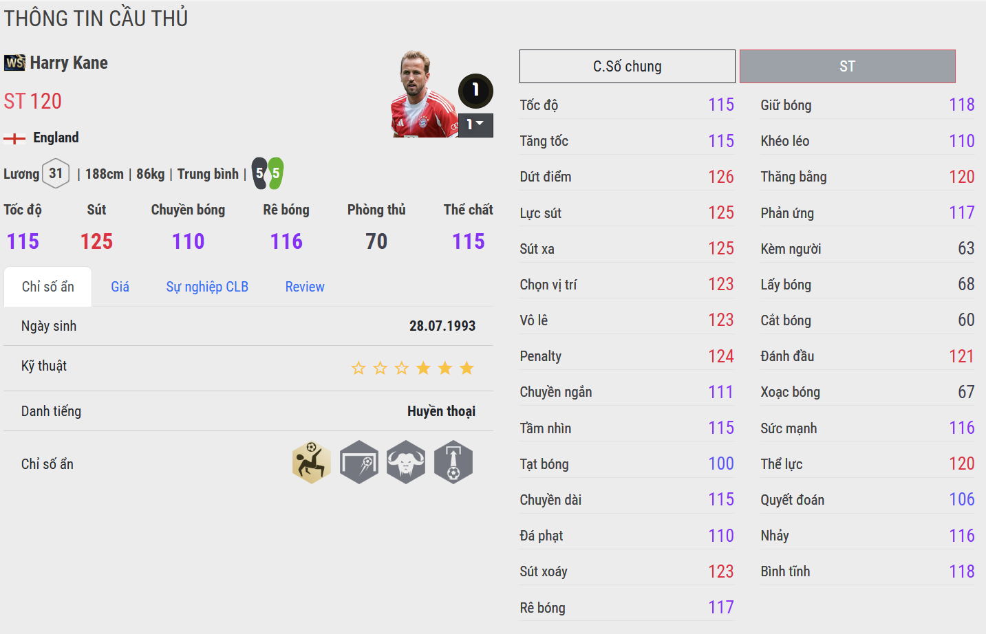 25TS: Đây là điểm bùng nổ nhất. Dứt điểm uy lực, sát thương cao, đặc biệt là sút xa – dễ tạo ra những cú nã pháo ngoài vòng cấm. Khả năng ZD và DD đều rất bén.