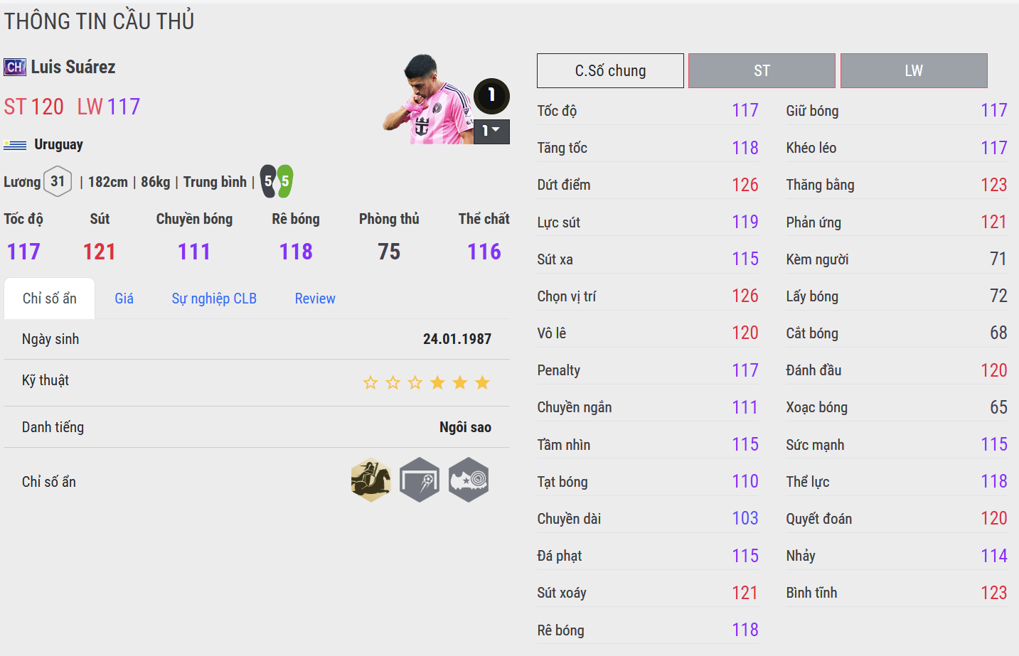 Trong FC Online, Suárez là lựa chọn hoàn hảo cho những HLV muốn có một trung phong vừa hiệu quả, lì lợm, lại sở hữu tinh thần không bỏ cuộc, sẵn sàng tỏa sáng trong mọi khoảnh khắc quyết định của trận đấu.