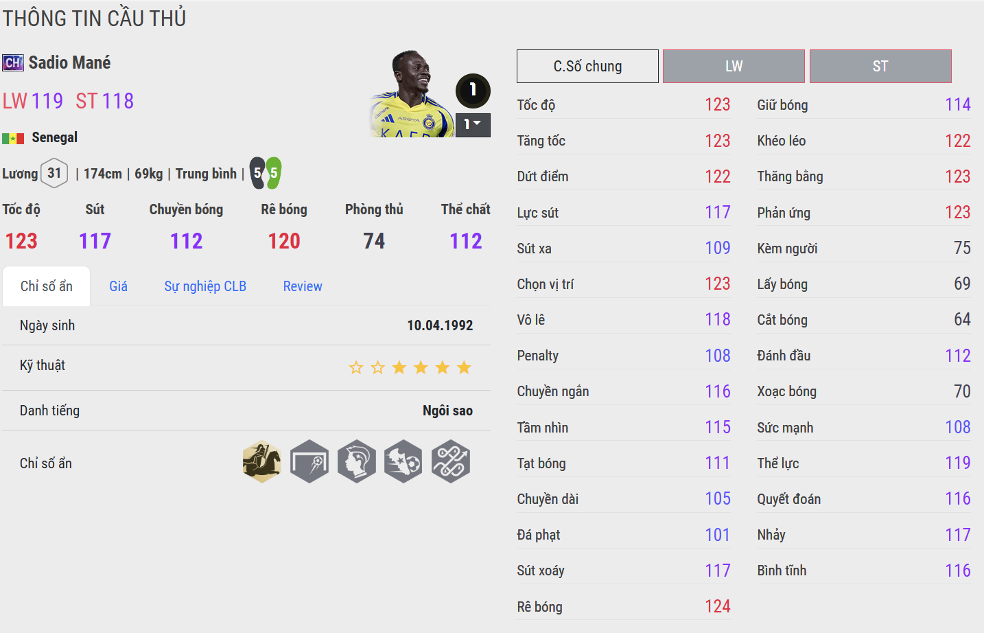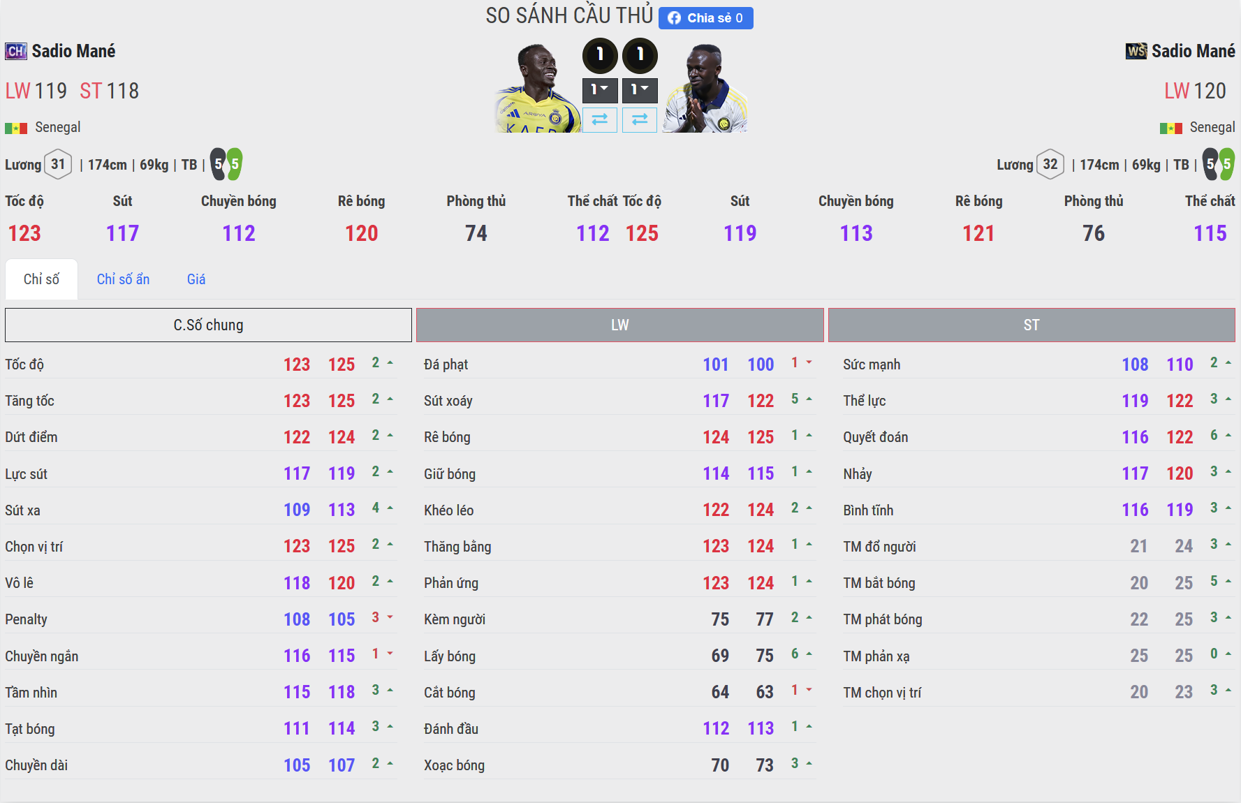 Sadio Mané mùa WS thể hiện rõ nét sự bùng nổ vốn gắn liền với thời kỳ đỉnh cao của anh ở Liverpool. Những pha tăng tốc ngắn của WS rất bén, bước đầu mạnh và khả năng vượt người vô cùng ấn tượng. Khi đẩy bóng dài hoặc băng vào khoảng trống, WS cho cảm giác “xé gió”, tạo ra khoảng cách nhanh chóng với hậu vệ. Ngược lại, mùa CH lại mang phong thái ổn định và mượt mà hơn. Tốc độ của CH không bộc phát mạnh như WS, nhưng lại duy trì rất đều trên quãng chạy dài, kiểm soát bóng tốt và ít bị lỗi chạm khi chạy tốc độ cao. WS là sự bùng nổ thuần túy, trong khi CH thiên về sự liền lạc và cân bằng trong từng nhịp chuyển động.