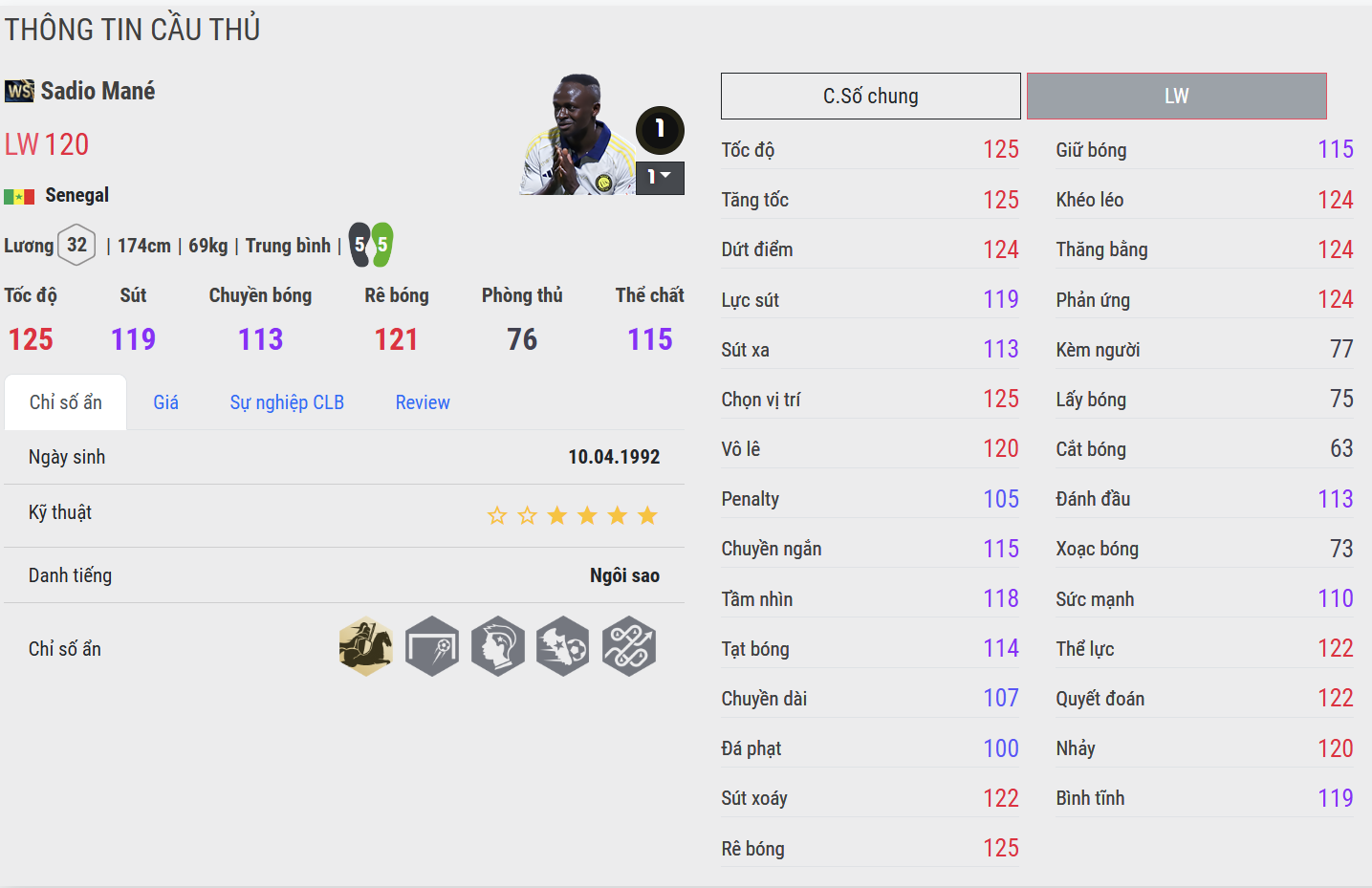 Sadio Mané WS cho phép người chơi thực hiện những pha đảo bóng và đổi hướng tốc độ cao rất sắc. Cảm giác bóng nhẹ, các động tác skill mượt và dễ tạo ra độ đột biến khi đối mặt 1v1. Đây là mùa thẻ tái hiện đúng hình ảnh Mané linh hoạt – nhanh – sắc trong các pha xử lý ở biên. Trong khi đó, phiên bản CH lại cho cảm giác bóng chắc hơn và mượt hơn khi xoay trở. CH không bùng nổ bằng WS trong rê tốc độ, nhưng lại ổn định ở các pha xử lý trong không gian hẹp, ít bị giật bóng và dễ kiểm soát nhịp chơi. WS sắc sảo, CH mượt mà – mỗi mùa nổi bật theo một cách riêng.