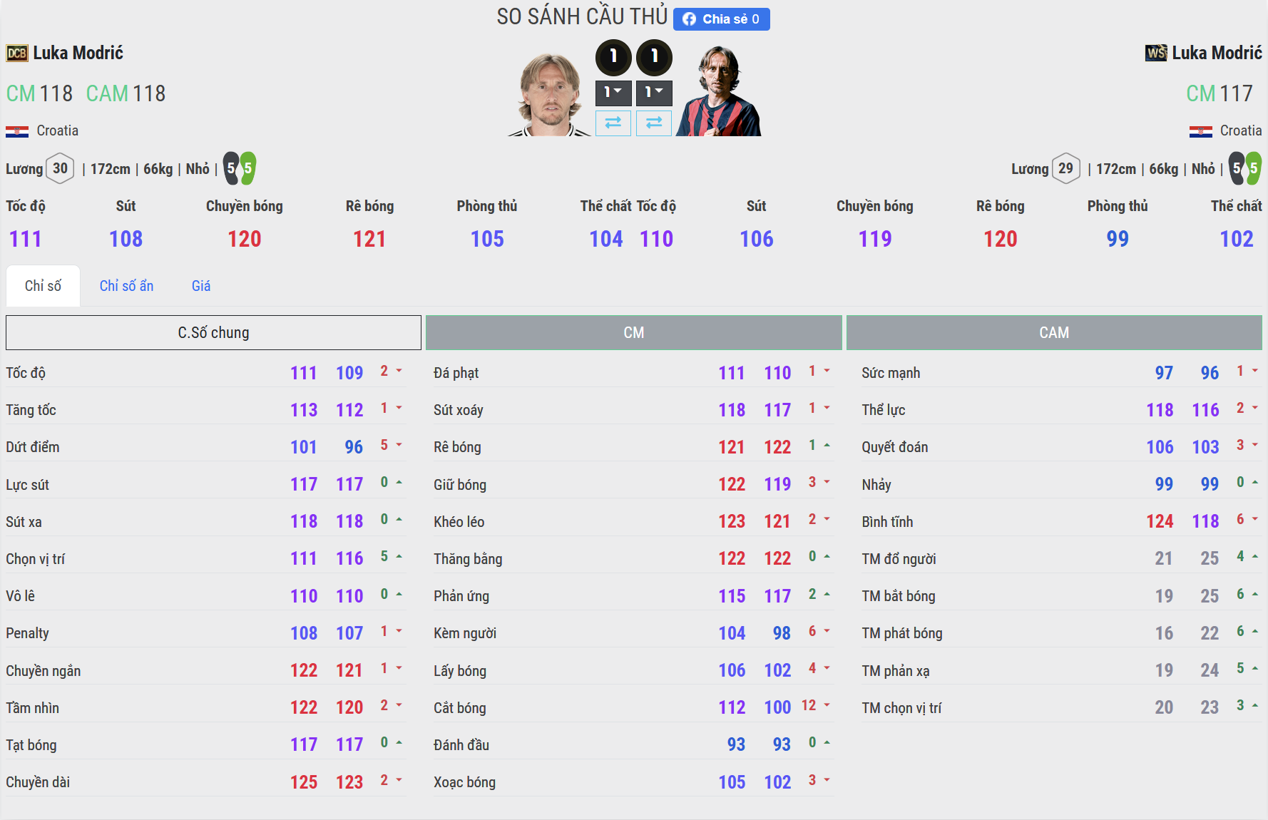Modric WS dứt điểm ở mức khá. Những cú sút xa tuyến hai có độ bất ngờ, nhưng hiệu suất chưa thực sự cao và phụ thuộc khá nhiều vào tư thế dứt điểm. Modric DCB cho cảm giác dứt điểm gọn gàng và chính xác hơn. Không sút nhiều, nhưng khi có khoảng trống, các pha đặt lòng hoặc sút chéo góc từ ngoài vòng cấm đều mang tính sát thương rõ rệt.