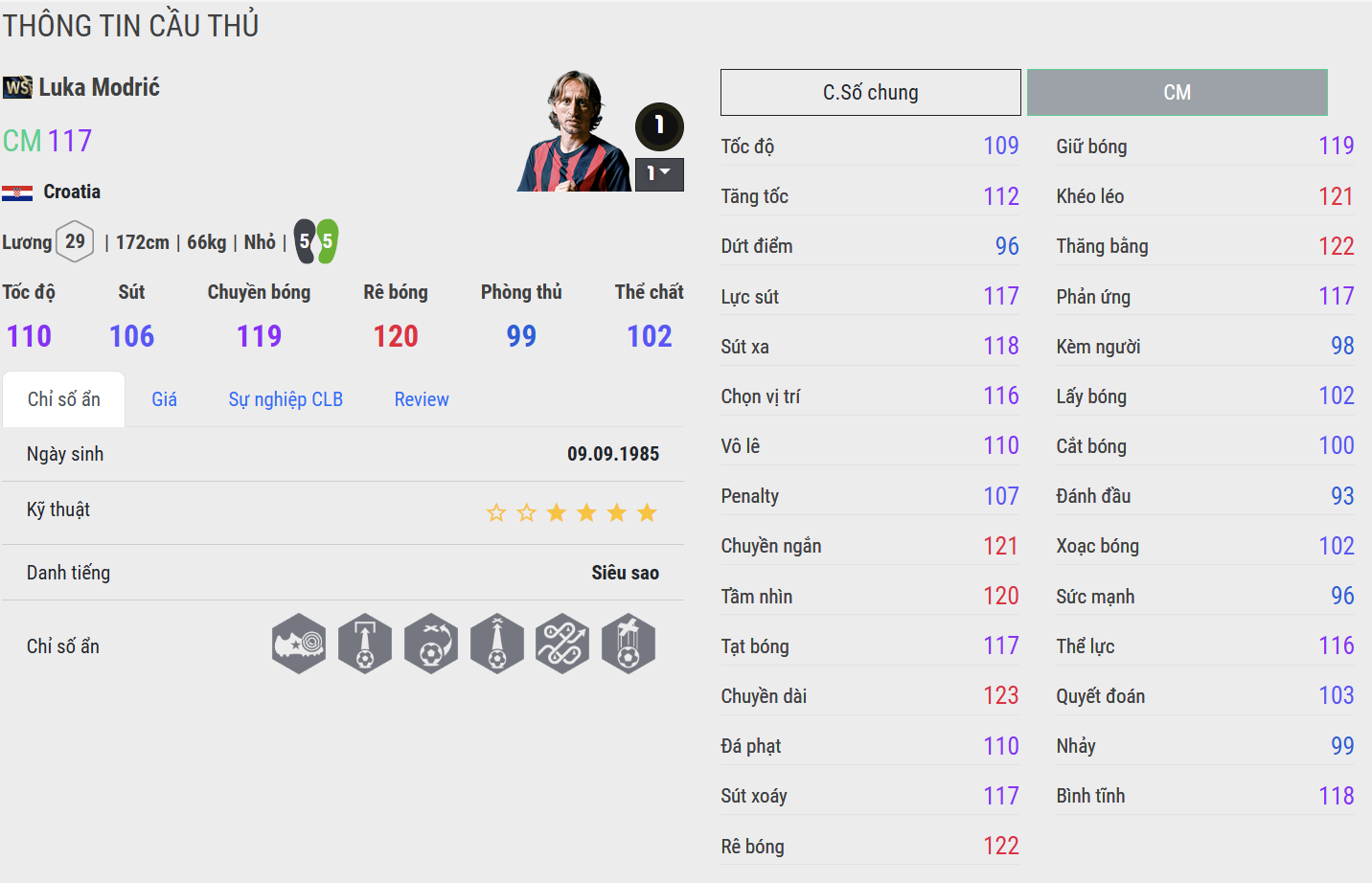 Modric WS rê bóng tốt, đổi hướng nhanh, xử lý mềm trong phạm vi hẹp. Phiên bản này dễ thoát pressing và phù hợp với các tình huống cần xử lý nhanh ở trung tuyến. Modric DCB rê bóng không phô trương nhưng cực kỳ tinh tế. Mỗi pha chạm bóng đều gọn gàng, giữ bóng chắc và hiếm khi mất bóng. DCB không rê để vượt qua nhiều người, mà để giữ nhịp và tạo lợi thế vị trí.