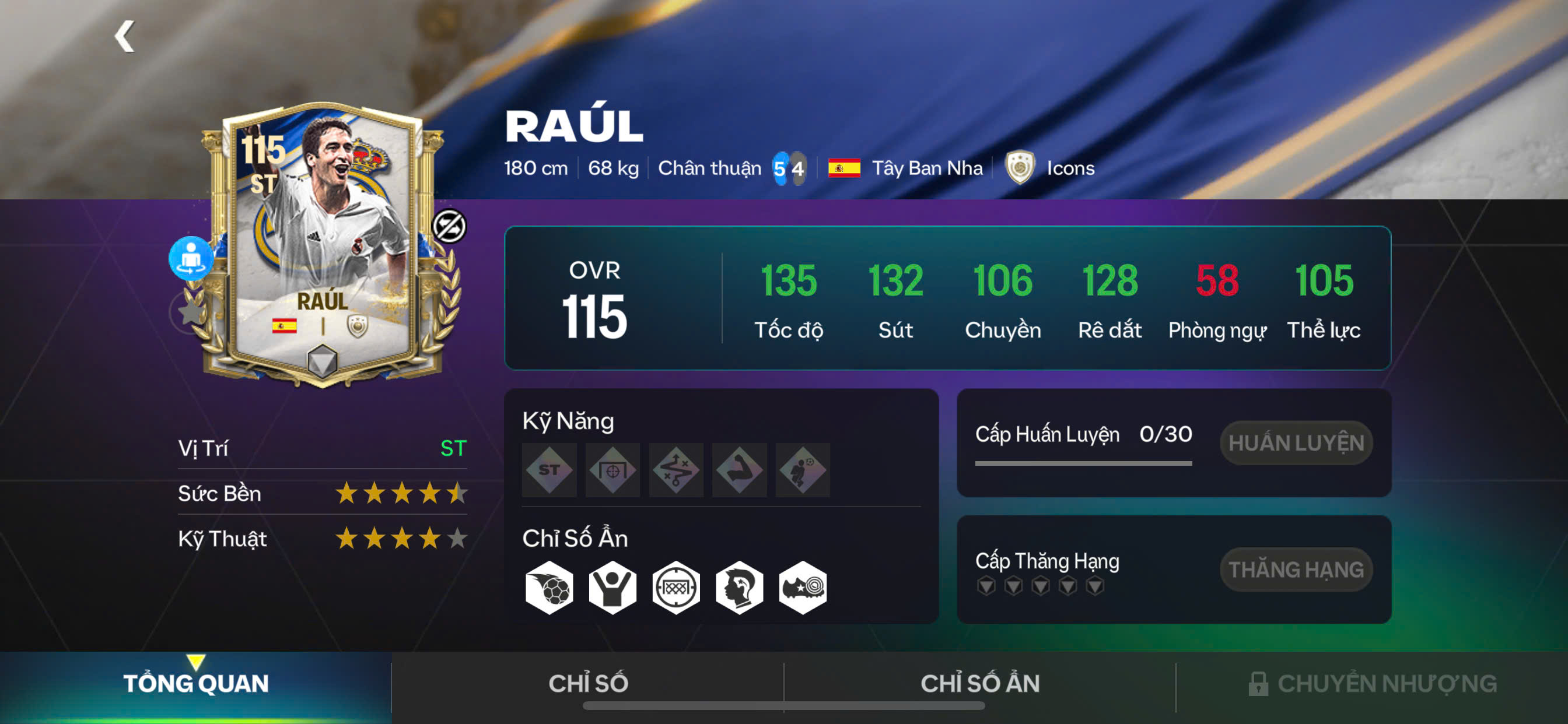 Raúl là linh hồn của Real Madrid. Sự điềm tĩnh, bản năng ghi bàn và tinh thần thủ lĩnh của anh được tái hiện hoàn hảo trong mùa GLORIOUS ERAS – xứng đáng đứng đầu bảng xếp hạng.