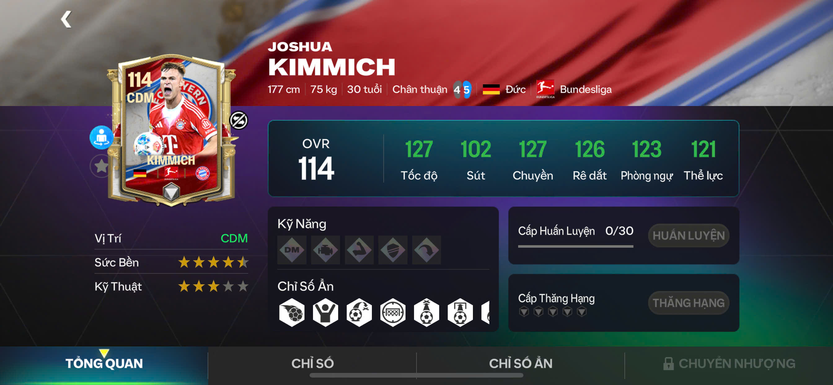 Kimmich tái hiện hình ảnh một tiền vệ trung tâm mẫu mực: thông minh, bền bỉ và cực kỳ chuẩn xác trong từng pha xử lý. Anh là điểm nối giữa phòng ngự và tấn công, sở hữu khả năng chuyền bóng đa dạng, đánh chặn sắc bén và nền tảng thể lực ổn định. Kimmich GE đóng vai trò như “bộ điều phối” của cả đội — âm thầm nhưng không thể thiếu, giúp lối chơi vận hành trơn tru và đầy kỷ luật.