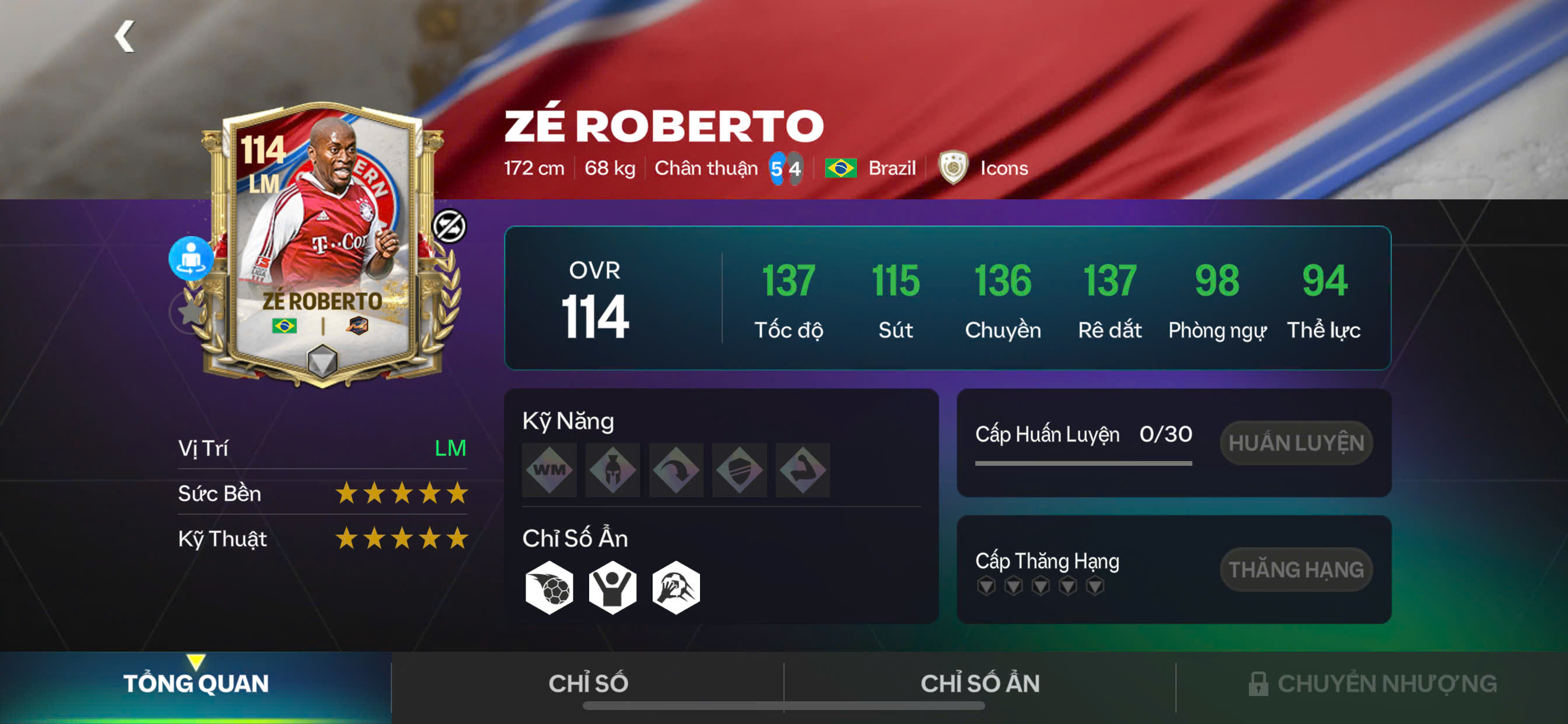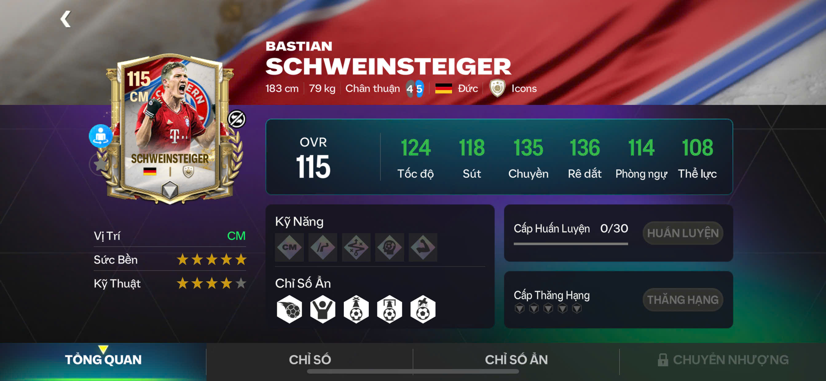 Đây là mùa thẻ tôn vinh những giai đoạn rực rỡ nhất của “Hùm xám”, nơi hội tụ những biểu tượng đã làm nên danh tiếng của sân Allianz Arena: từ những trung vệ thép, bộ đôi tiền vệ công cần mẫn mà hiệu quả, cho tới các sát thủ tuyến đầu sở hữu bản năng săn bàn đáng sợ. Điểm nhấn của GE Bayern nằm ở sự cân bằng tuyệt đối trong lối chơi: sức mạnh – tốc độ – kỷ luật chiến thuật – độ hiệu quả trong từng pha xử lý.