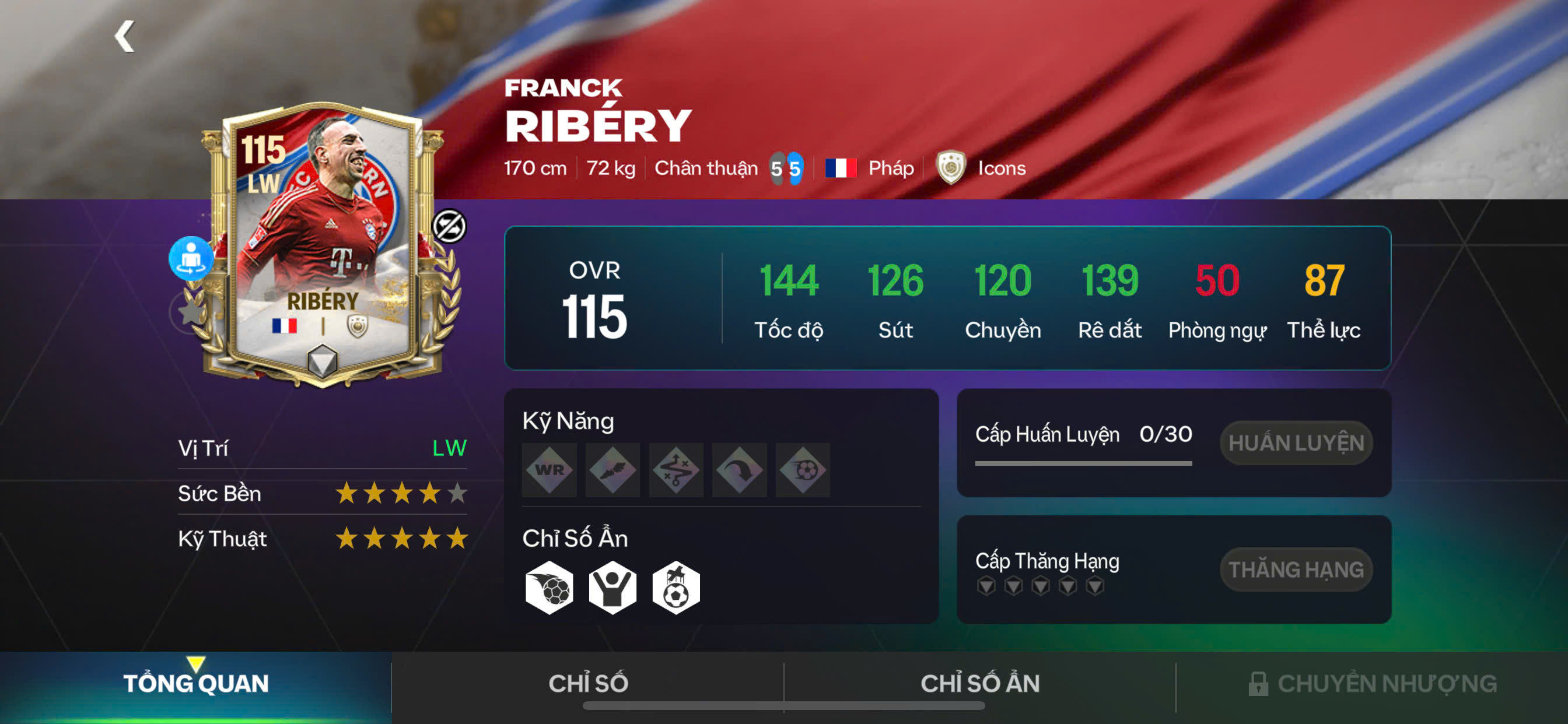 Ribéry tái hiện hình ảnh “Gã mặt sẹo” thời đỉnh cao: nhanh – bén – khó lường. Tốc độ vượt trội, khả năng ngoặt bóng, xử lý trong không gian hẹp và độ tinh quái giúp anh tạo ra vô số tình huống mở biên, chọc khe hoặc dứt điểm trực diện. Đây là mẫu cầu thủ có thể xoay chuyển cục diện chỉ trong một khoảnh khắc, biến biên trái trở thành vũ khí nguy hiểm bậc nhất.