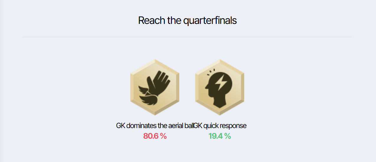 Trong khi đó, “GK Phản ứng nhanh” tăng khả năng phản xạ trong các tình huống dứt điểm bất ngờ. Thủ môn có thể phản ứng nhanh với những cú sút cận thành, sút một chạm hoặc các pha bóng đổi hướng, từ đó nâng cao tỷ lệ cản phá trong những khoảnh khắc quyết định.