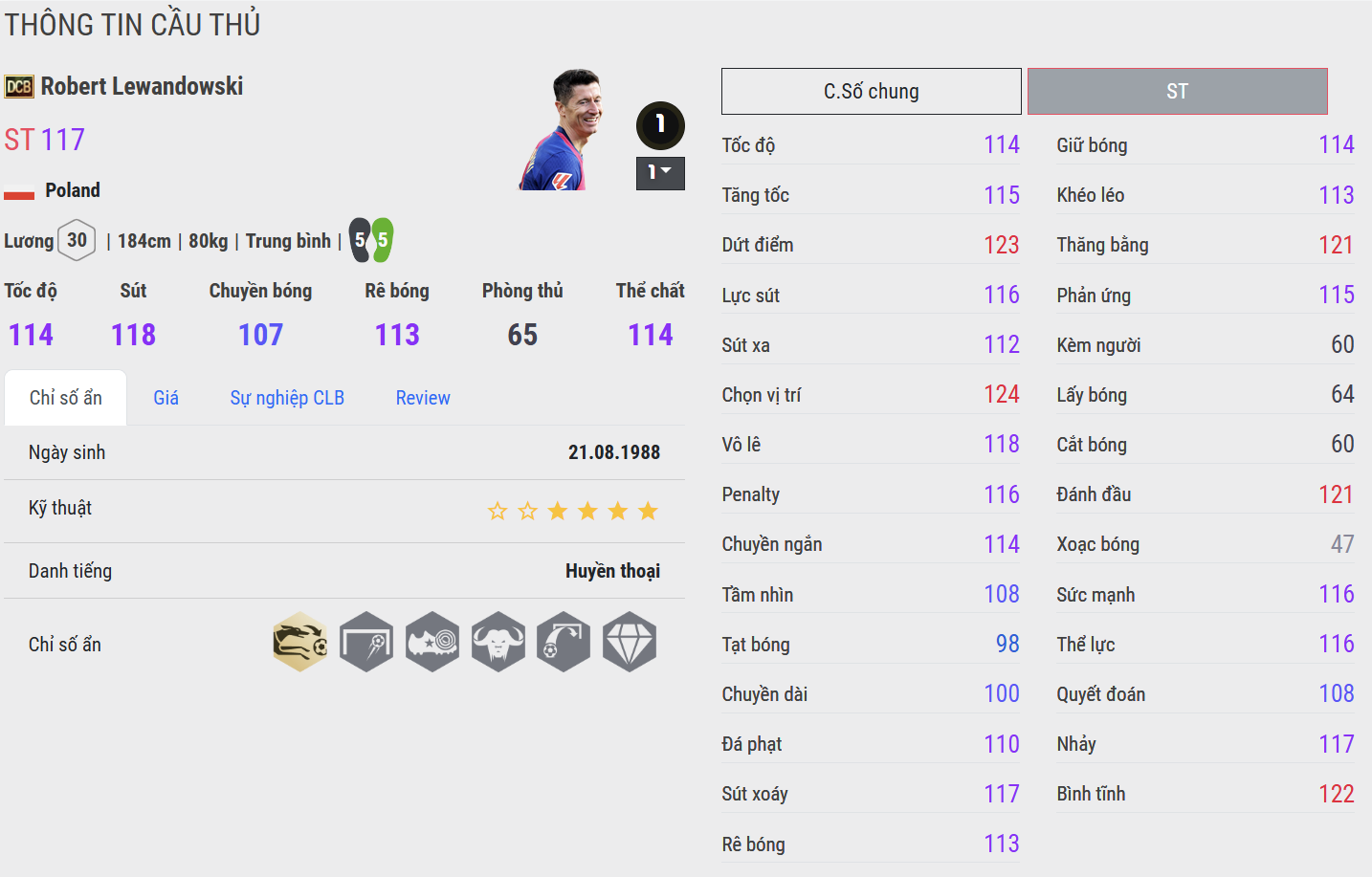 Lewandowski DCB là hiện thân của một “cỗ máy ghi bàn” đúng nghĩa. Anh sở hữu thể hình lý tưởng, khả năng chọn vị trí chính xác và kỹ năng dứt điểm ở mọi tư thế. Trong gameplay, Lewandowski DCB cực kỳ ổn định: từ đánh đầu, sút xa đến xoay người dứt điểm đều ở mức cao. Một trung phong toàn diện, đáng tin cậy cho mọi meta chiến thuật trong rank cao.