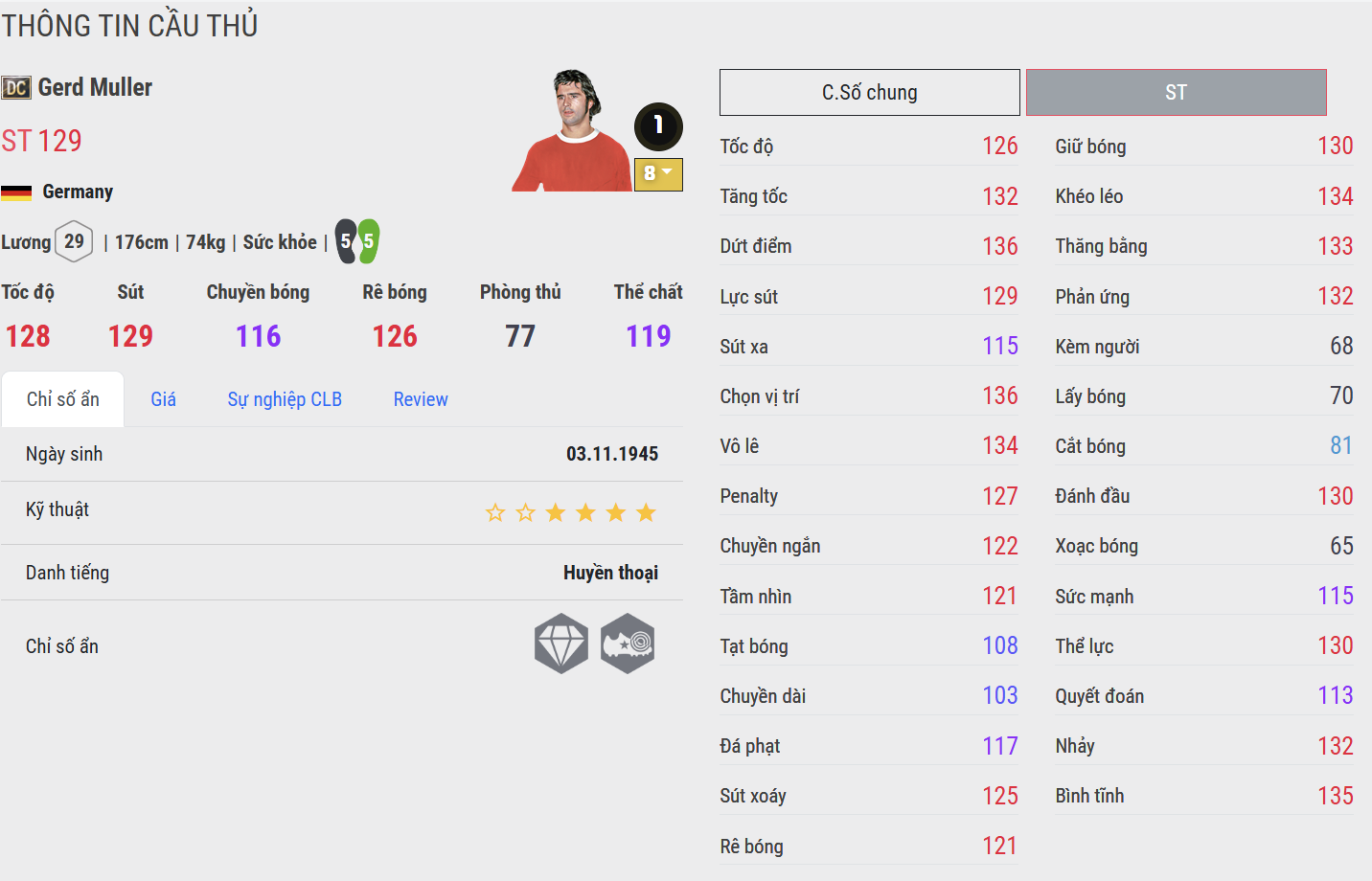 “Vua dội bom” người Đức tái hiện phong cách săn bàn cổ điển với sự nhạy bén trong vòng cấm và khả năng chọn vị trí thiên bẩm. Müller DC được tin dùng nhờ lối chơi đơn giản nhưng hiệu quả, luôn biết cách xuất hiện đúng lúc để ghi bàn.
