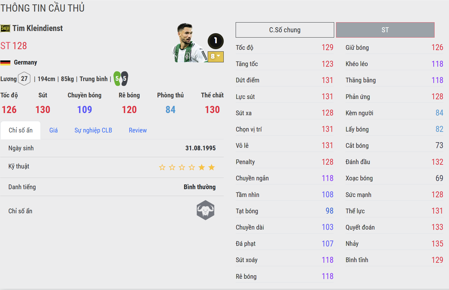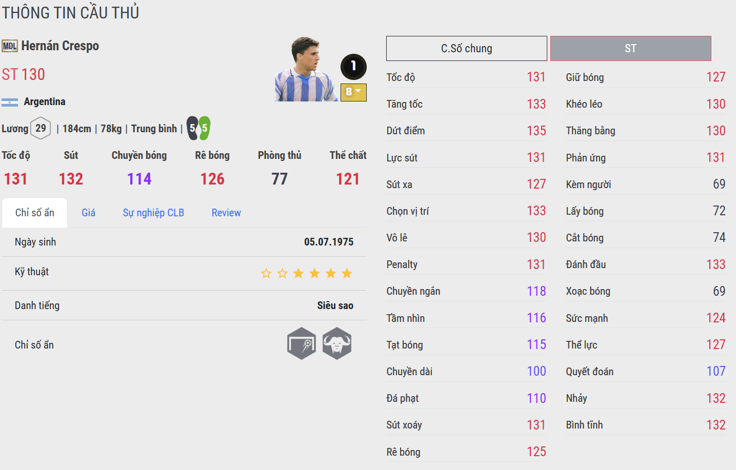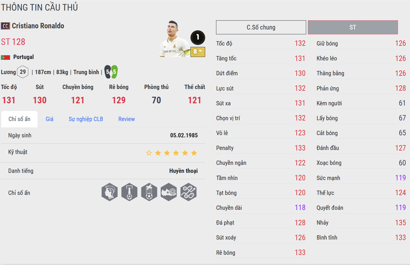 Siêu sao người Bồ Đào Nha vẫn là biểu tượng của sự toàn diện. Ronaldo CC vừa mạnh mẽ trong không chiến, vừa nguy hiểm trong những pha bứt tốc và dứt điểm một chạm. Anh là lựa chọn không thể thiếu trong đội hình của nhiều HLV.