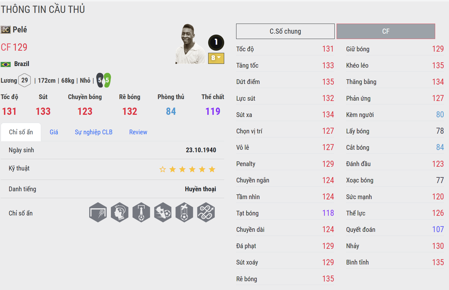 Huyền thoại bóng đá Brazil tiếp tục khẳng định vị thế số một. Pelé DC sở hữu kỹ năng toàn diện, từ tốc độ, sự khéo léo cho đến khả năng dứt điểm đa dạng. Anh là “lá bài tẩy” giúp nhiều HLV xoay chuyển cục diện trong những khoảnh khắc quyết định.
