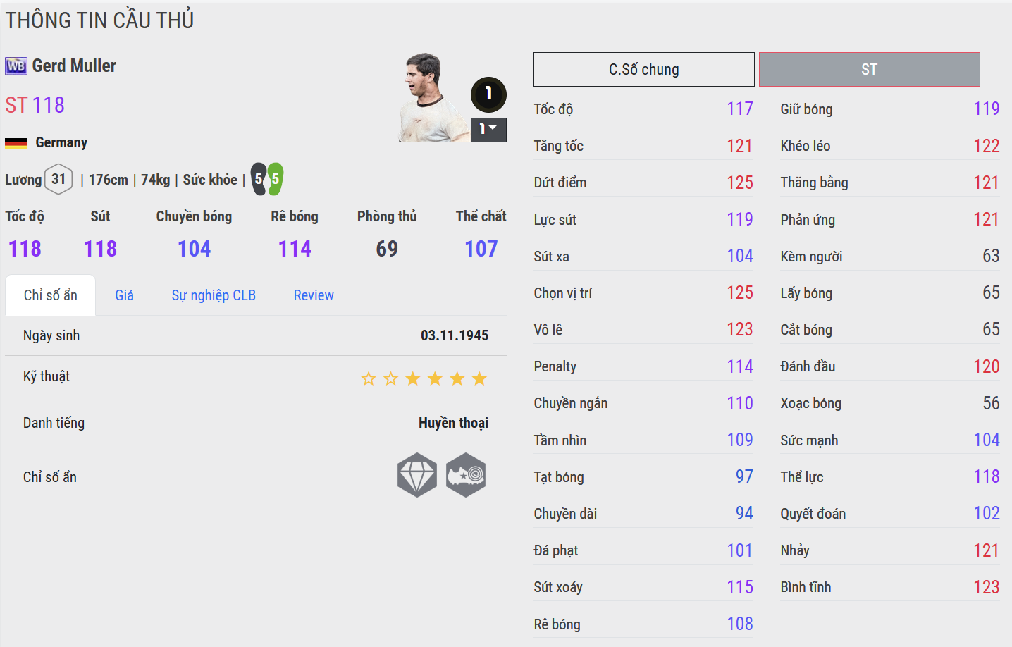 Muller WB tái hiện hình ảnh sát thủ vòng cấm cổ điển của bóng đá Đức. Khả năng chọn vị trí cực kỳ nhạy bén, di chuyển thông minh và dứt điểm một chạm chính xác giúp ông luôn xuất hiện đúng lúc ở những điểm nóng. Đây là phiên bản mang tính biểu tượng, thể hiện rõ bản năng săn bàn lạnh lùng và hiệu suất ghi bàn ổn định.