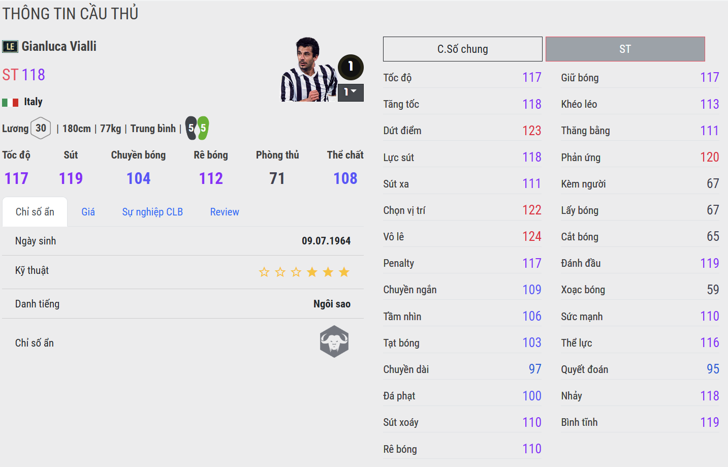 Vialli LE là mẫu trung phong có khả năng bám cắm tốt, kỹ năng dứt điểm xuất sắc và cực kì nhạy bén trong phạm vi vòng cấm bằng cả 2 chân. Tốc độ di chuyển của Vialli cũng là rất nhanh từ khả năng di chuyển có phần chủ động cùng với đó là bứt tốc quãng ngắn tốt. Khả năng không chiến từ những tình huống cố định của Vialli cũng là điểm tạo nên sự đa dạng trong lối chơi và được nhiều game thủ Hàn tin dùng.