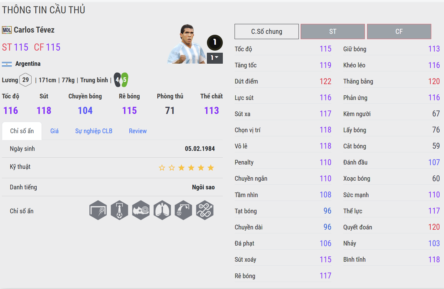 Tevez MDL là một phiên bản tiền đạo được nâng cấp cực kì chất lượng của cầu thủ người Argentina, anh có thể chơi đa năng ở nhiều vị trí trên hàng công từ tiền đạo cắm, hộ công cho tới tiền đạo cánh cũng khá ổn. Tốc độ tốt, kỹ năng dứt điểm đa dạng cả trong lẫn ngoài vòng cầm cùng với đó là khả năng so vai cực kì lì đòn và khó chịu dù chỉ cao 1m71. Đây là một trong những mẫu tiền đạo khá hợp với meta hiện tại.