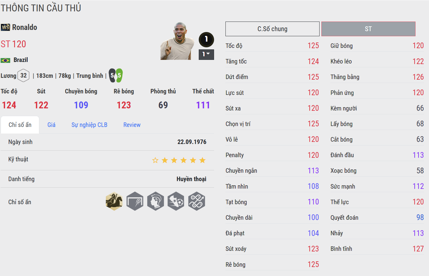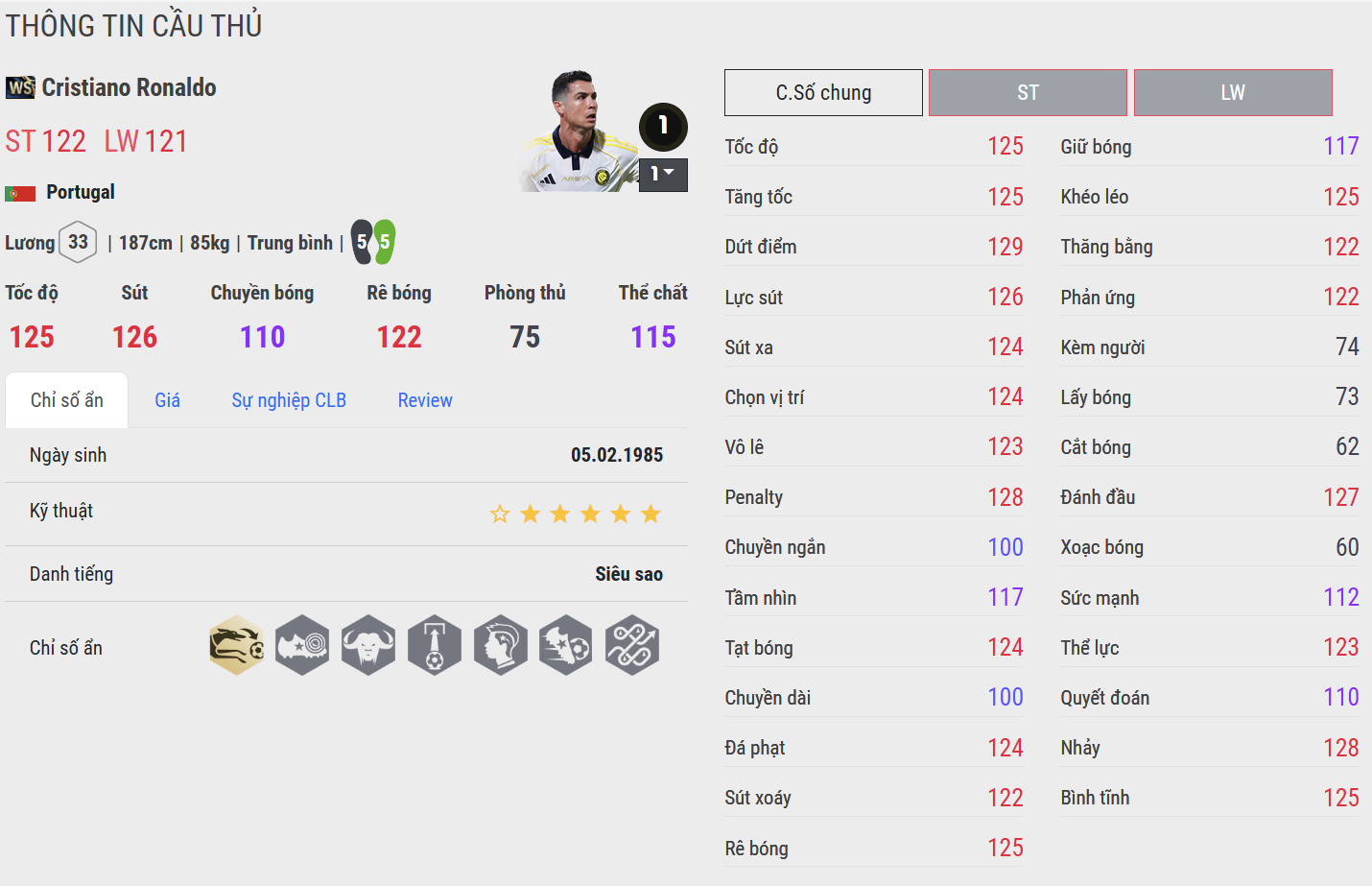 Đứng đầu danh sách là CR7 WS – hiện thân của một sát thủ toàn diện. Với thể hình lý tưởng, khả năng không chiến tuyệt vời, tốc độ bứt phá và những cú dứt điểm chuẩn xác, CR7 WS luôn là quân bài chủ lực giúp HLV yên tâm trong mọi trận đấu.