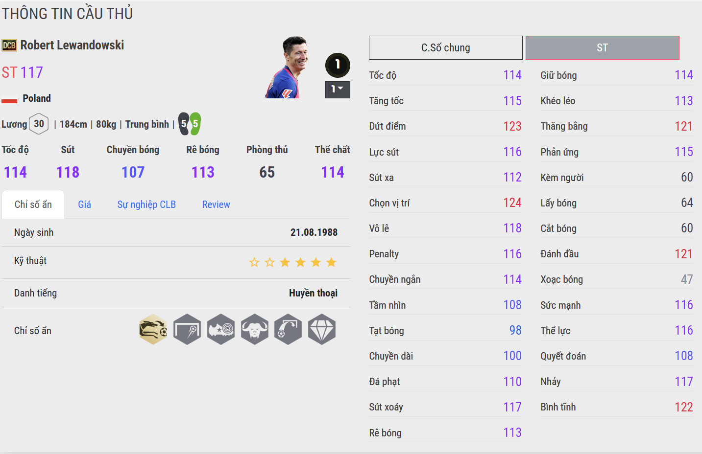 Lewandowski DCB mang đến sự toàn diện của một sát thủ vòng cấm. Anh dứt điểm tinh tế cả hai chân, chọn vị trí thông minh và duy trì thể lực ổn định suốt trận. Điểm đáng chú ý là khả năng xoay người dứt điểm nhanh trong vòng cấm – một vũ khí khiến anh trở thành nỗi ác mộng cho mọi hàng thủ.
