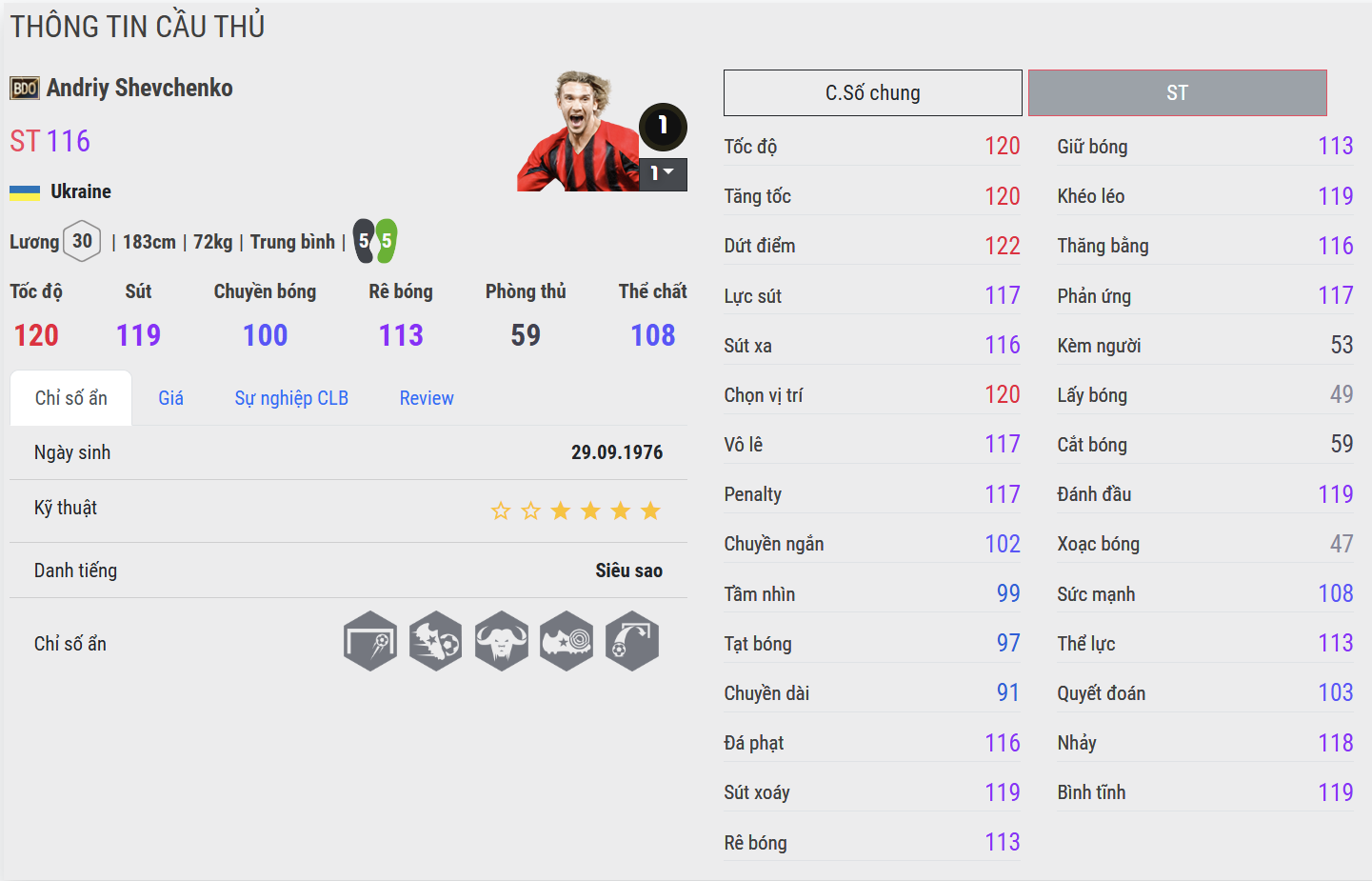 Shevchenko BDO là mẫu tiền đạo săn bàn cổ điển với khả năng chọn vị trí và dứt điểm cực kỳ sắc bén. Anh di chuyển thông minh trong vòng cấm, xử lý gọn gàng và không cần quá nhiều chạm để tạo ra bàn thắng. Trong gameplay, Sheva BDO phát huy tốt ở vai trò kết liễu, phù hợp với những đội hình ưa chuộng lối chơi tốc độ, ra chân nhanh và hiệu quả.