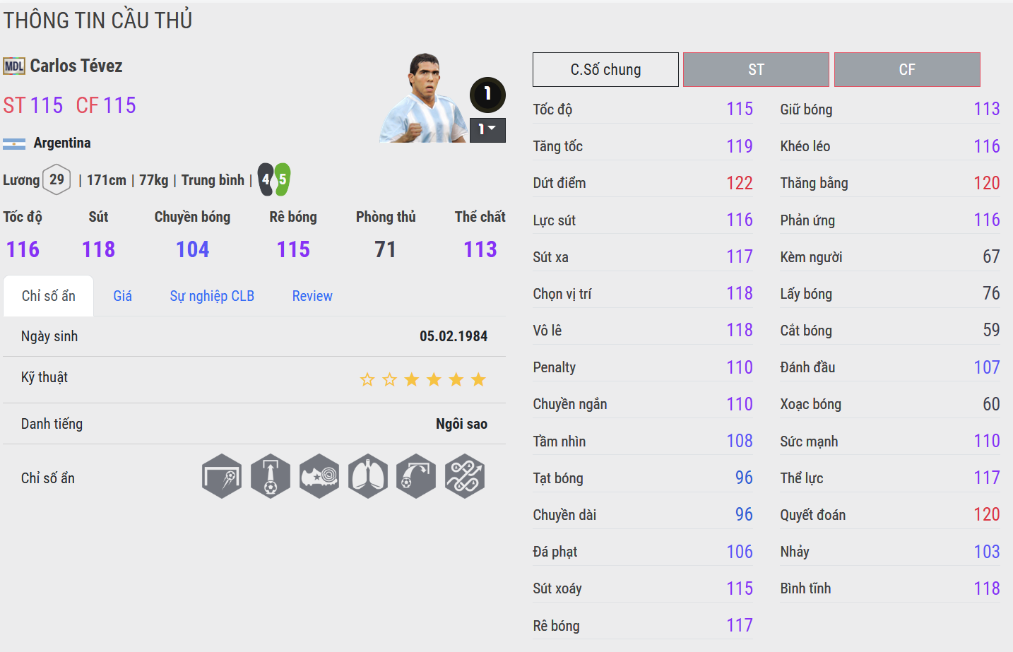 Tevez MDL mang đến màu sắc rất khác cho hàng công Man City: lỳ lợm, máu lửa và cực kỳ khó chịu. Anh di chuyển rộng, làm tường tốt, pressing rát và sẵn sàng va chạm với mọi hậu vệ. Gameplay của Tevez cho cảm giác “chiến binh” đúng nghĩa – không quá hoa mỹ nhưng cực kỳ hiệu quả, đặc biệt phù hợp với lối chơi pressing tầm cao và phối hợp nhanh.
