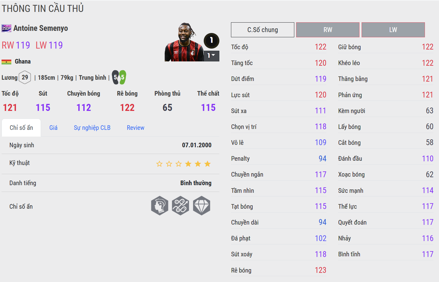 Semenyo là lựa chọn số một của mùa 25DP ở vị trí tiền vệ phải nhờ sự toàn diện hiếm thấy. Anh vừa nhanh, vừa mạnh, vừa khéo – hội tụ đầy đủ các yếu tố để thống trị hành lang phải. Khả năng rê bóng của Semenyo mượt, dứt điểm quyết đoán, tì đè vượt trội và thể lực gần như vô tận. Anh có thể tự mình tạo đột biến, hoặc chơi chặt chẽ theo chiến thuật đề ra. Trong phòng ngự, Semenyo áp sát dữ dội, cắt bóng chuẩn và luôn sẵn sàng hỗ trợ đồng đội. Đây là mẫu cầu thủ mang đến sự yên tâm tuyệt đối và đạt hiệu quả cao ngay khi đưa vào đội hình.