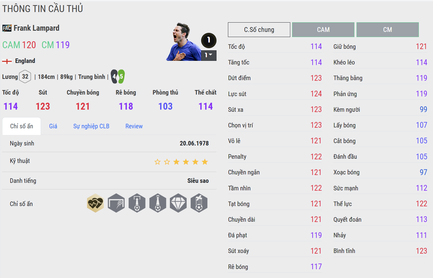 Lampard là hình ảnh của sự toàn diện nơi tuyến giữa. Anh sở hữu nhãn quan chiến thuật xuất sắc, khả năng dứt điểm từ xa và sự chính xác trong từng đường chuyền. Trong gameplay, Lampard thường xuất hiện đúng lúc ở các điểm nóng, vừa kiến tạo vừa trực tiếp tạo cơ hội ghi bàn, mang đến cảm giác “ổn định và uy tín” cho đội hình.