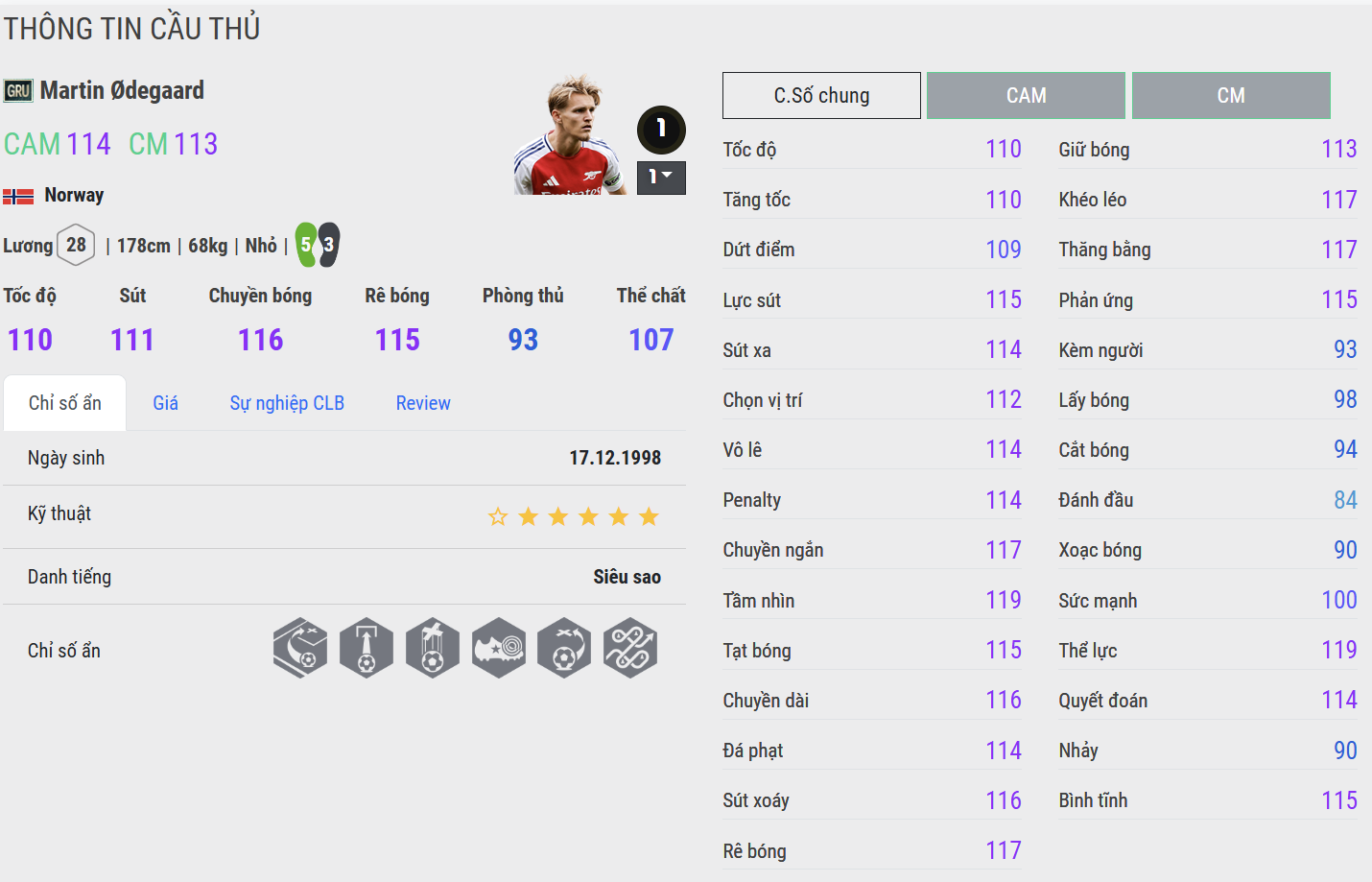 Odegaard GRU là mẫu tiền vệ tấn công chơi bóng bằng tư duy. Khả năng chuyền bóng, điều tiết và tung ra các đường chọc khe chuẩn xác giúp anh giữ nhịp lối chơi rất tốt. Tuy nhiên, ở khâu tranh chấp và dứt điểm trong box, phiên bản này vẫn thiên về hỗ trợ hơn là tạo đột biến trực tiếp.