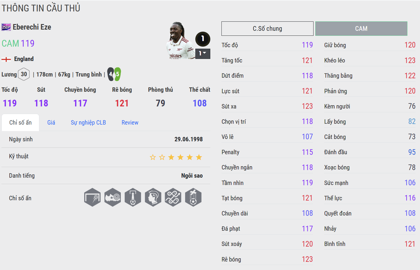 Eze 25DP mang đến sự tươi mới và ngẫu hứng cho tuyến giữa. Khả năng rê bóng, xoay trở và xử lý một chạm trong không gian hẹp giúp anh dễ dàng thoát pressing. Đây là mẫu CAM chơi giàu cảm xúc, phù hợp với những đội hình cần sự sáng tạo và đột phá từ trung lộ.