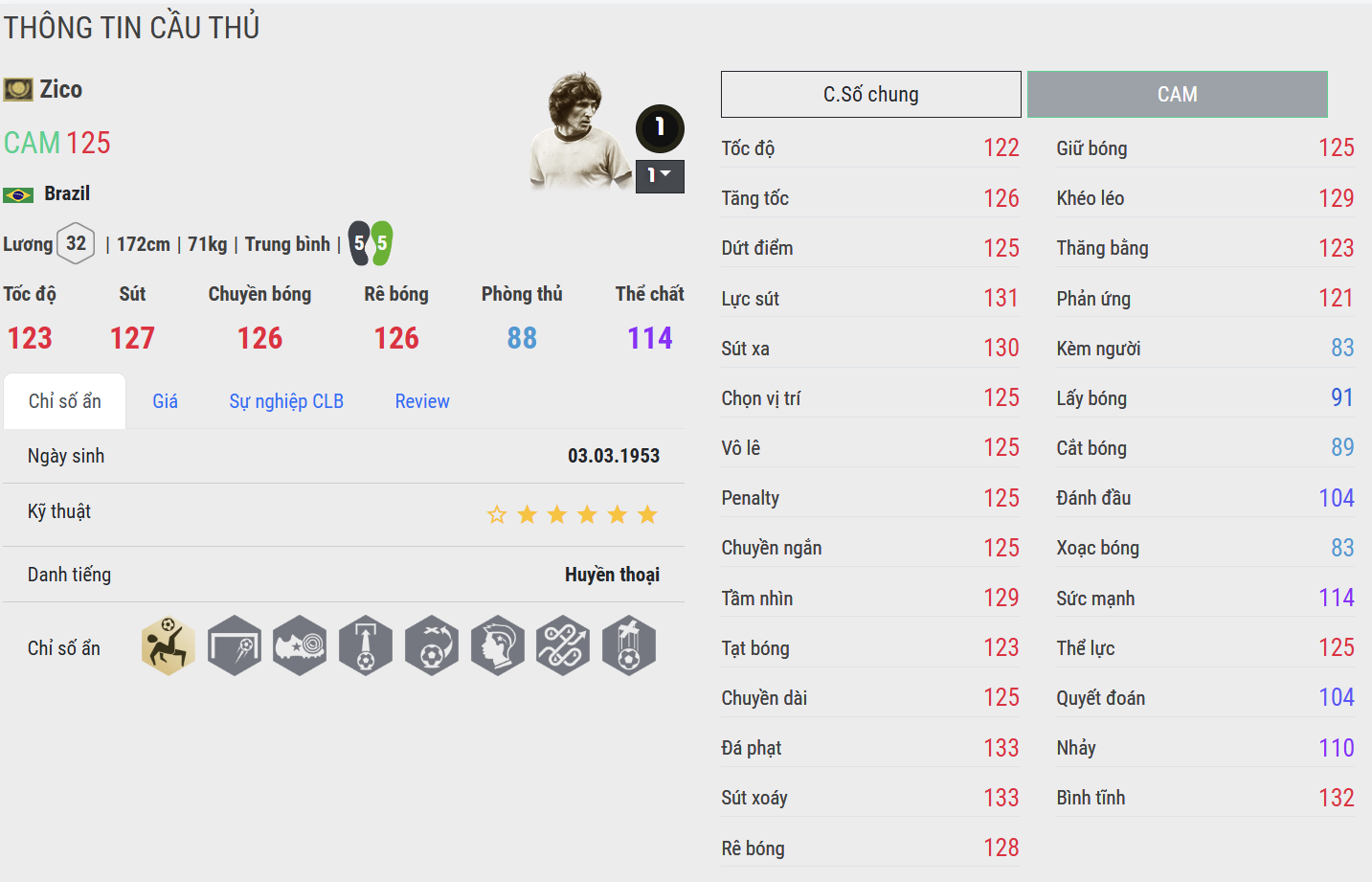 Pelé DC là lựa chọn toàn diện và hiệu quả nhất cho vị trí CAM. Ông sở hữu đầy đủ mọi yếu tố: tốc độ, kỹ thuật, dứt điểm và khả năng tạo đột biến. Pele không chỉ kiến tạo mà còn trực tiếp ghi bàn với độ ổn định rất cao, trở thành trung tâm trong mọi pha tấn công của team Brazil.