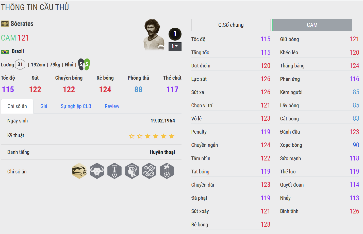 Sócrates ITM mang đến sự khác biệt nhờ thể hình và phong cách chơi bóng điềm tĩnh. Ông không quá nhanh nhưng bù lại là khả năng giữ bóng, làm tường và tung ra những đường chuyền cực kỳ thông minh. Trong thực chiến, Socrates là cầu nối hoàn hảo giữa tuyến giữa và hàng công.