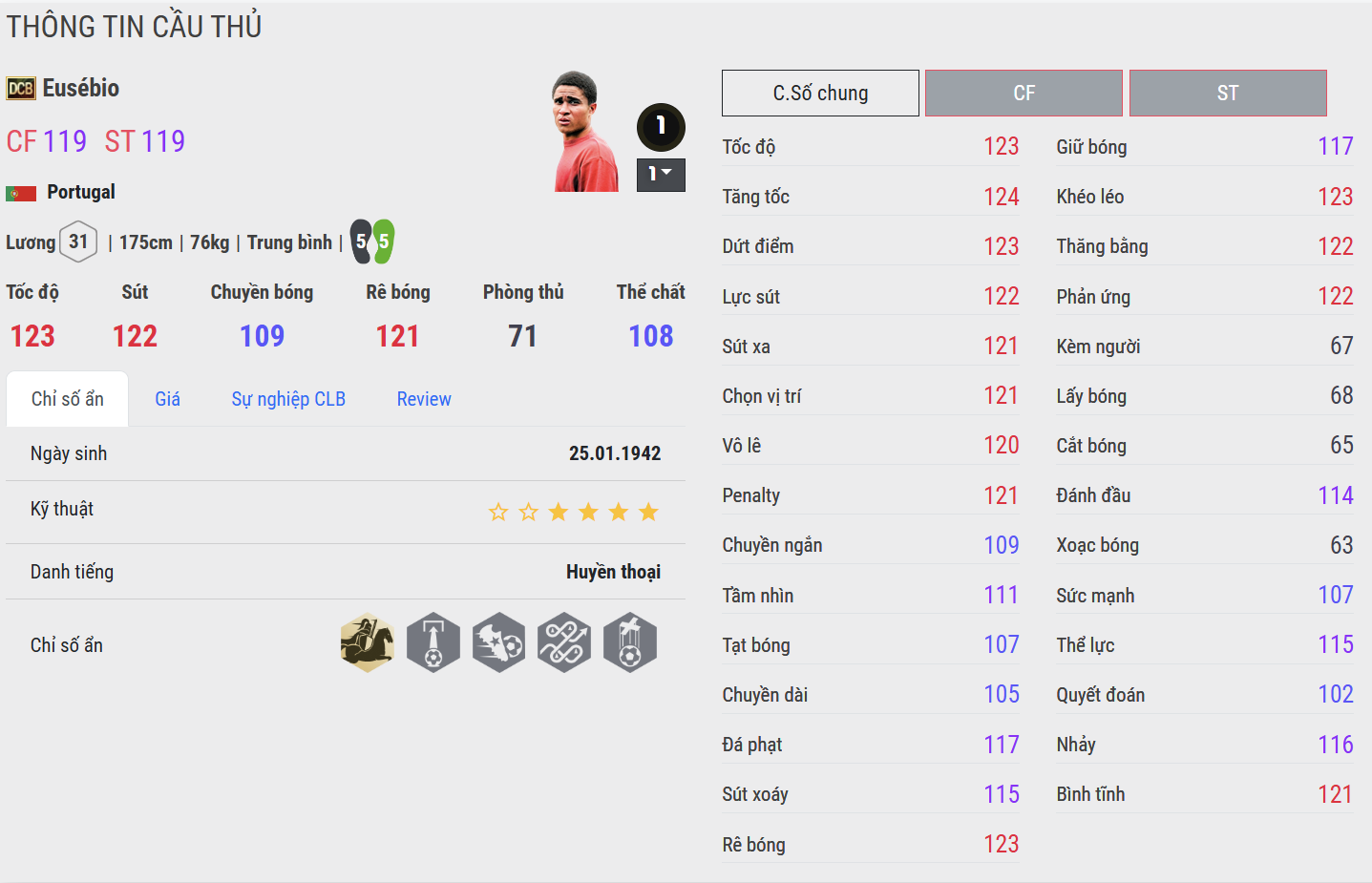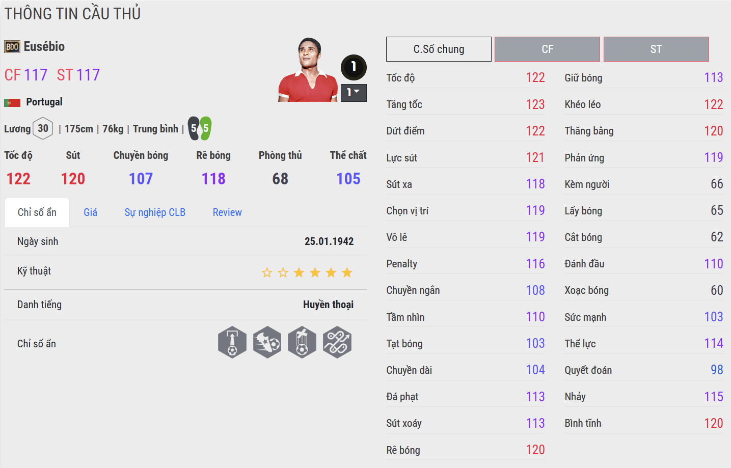 Eusébio BDO là phiên bản gần như hoàn hảo về mặt tấn công. Ông có thể tự mình tạo đột biến bằng tốc độ, rê bóng và những pha dứt điểm cực kỳ sắc bén, đặc biệt nguy hiểm khi chơi hộ công lệch.