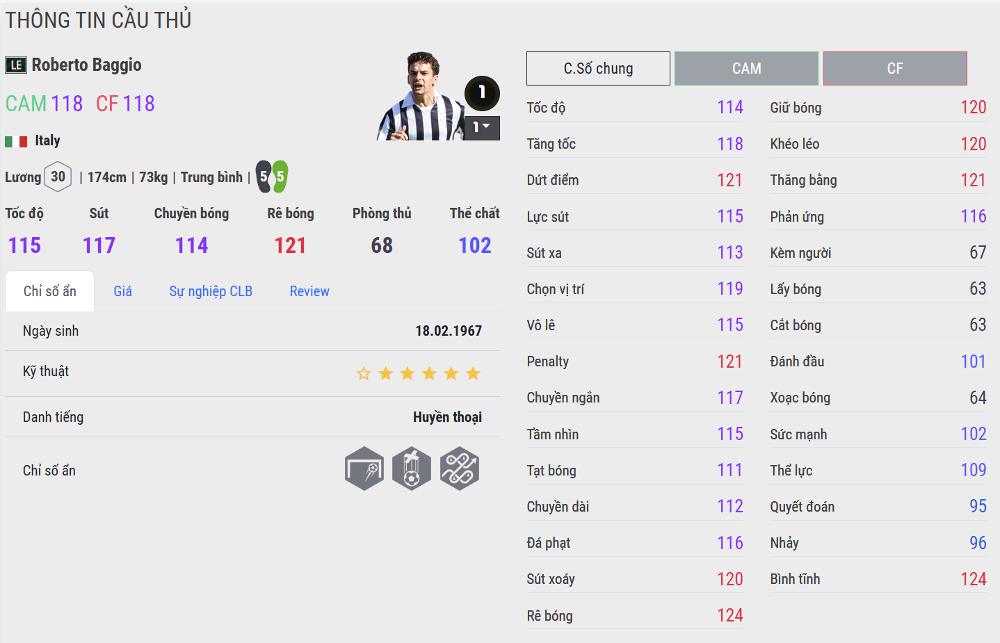 Roberto Baggio LE là lựa chọn hoàn hảo nhất cho vị trí CAM của Ý. Kỹ thuật, sự mềm mại và khả năng tạo đột biến của Baggio đạt đến đẳng cấp cao nhất. Trong thực chiến, anh có thể tự mình mở ra cơ hội bằng những pha rê bóng hoặc đường chuyền mang tính quyết định.