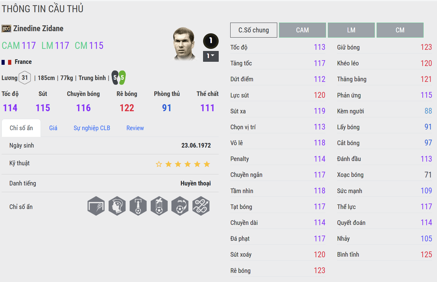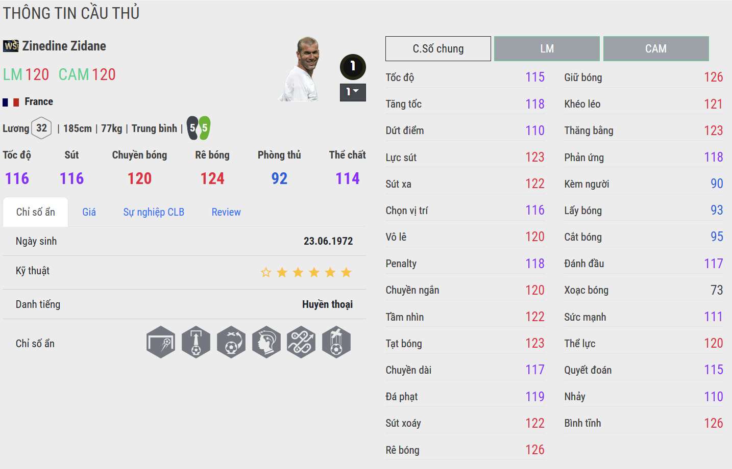 Zinedine Zidane WS là phiên bản toàn diện và hiệu quả nhất trong danh sách này. Zidane sở hữu khả năng kiểm soát bóng tuyệt vời, chuyền bóng cực kỳ chính xác và nhãn quan chiến thuật xuất sắc. Trong thực chiến, anh có thể vừa tổ chức lối chơi, vừa tham gia dứt điểm khi có cơ hội, trở thành trung tâm sáng tạo quan trọng giúp đội hình vận hành mượt mà và hiệu quả.