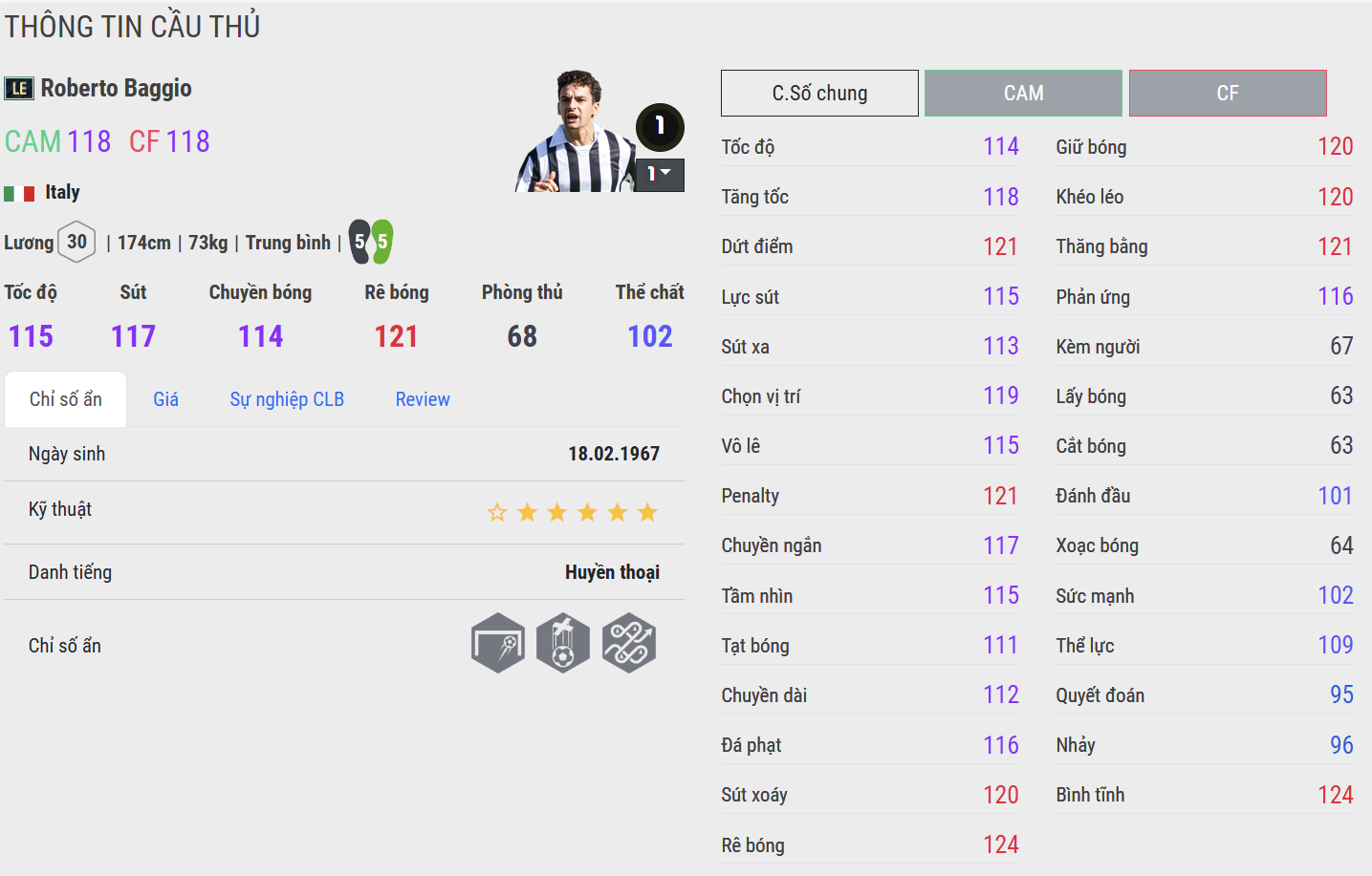 Roberto Baggio LE là mẫu cầu thủ tấn công thiên về kỹ thuật và sự khéo léo. Baggio có khả năng rê bóng mượt mà, xử lý bóng linh hoạt và tạo ra nhiều pha đột phá bất ngờ ở khu vực trung lộ. Ngoài ra, khả năng dứt điểm tinh tế của anh cũng giúp tạo ra nhiều tình huống nguy hiểm trước khung thành đối phương.