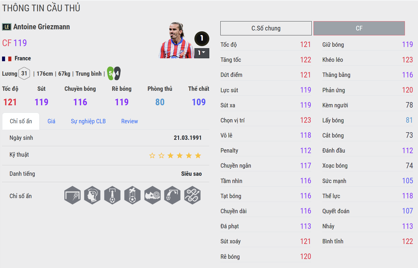 Antoine Griezmann LE là mẫu hộ công hiện đại với khả năng di chuyển thông minh và tham gia tấn công linh hoạt. Griezmann có thể lùi xuống nhận bóng, phối hợp và xâm nhập vòng cấm đúng thời điểm. Ngoài ra, khả năng dứt điểm cũng giúp anh tạo ra nhiều bàn thắng quan trọng.