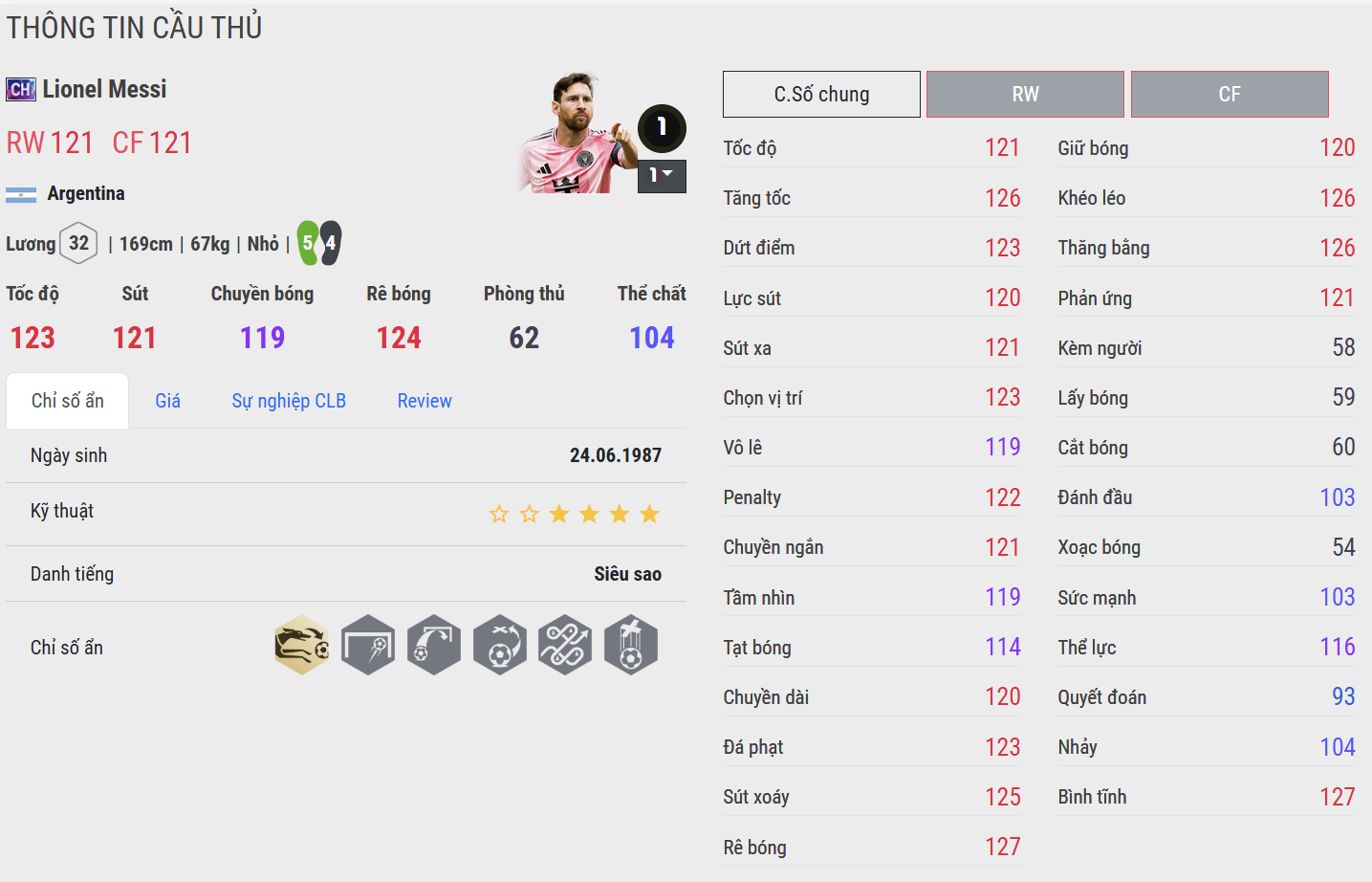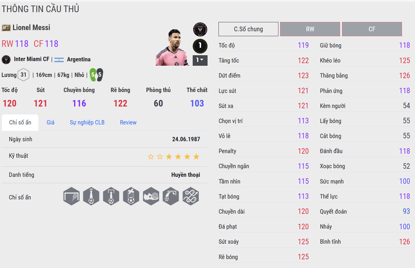 Lionel Messi BLD là phiên bản hoàn thiện nhất cho vị trí CAM trong team PSG. Messi sở hữu khả năng kiểm soát bóng tuyệt vời, chuyền bóng chính xác và dứt điểm cực kỳ hiệu quả. Anh có thể vừa điều tiết lối chơi, vừa trực tiếp ghi bàn bằng những pha xử lý đẳng cấp, trở thành trung tâm sáng tạo không thể thay thế trong đội hình.