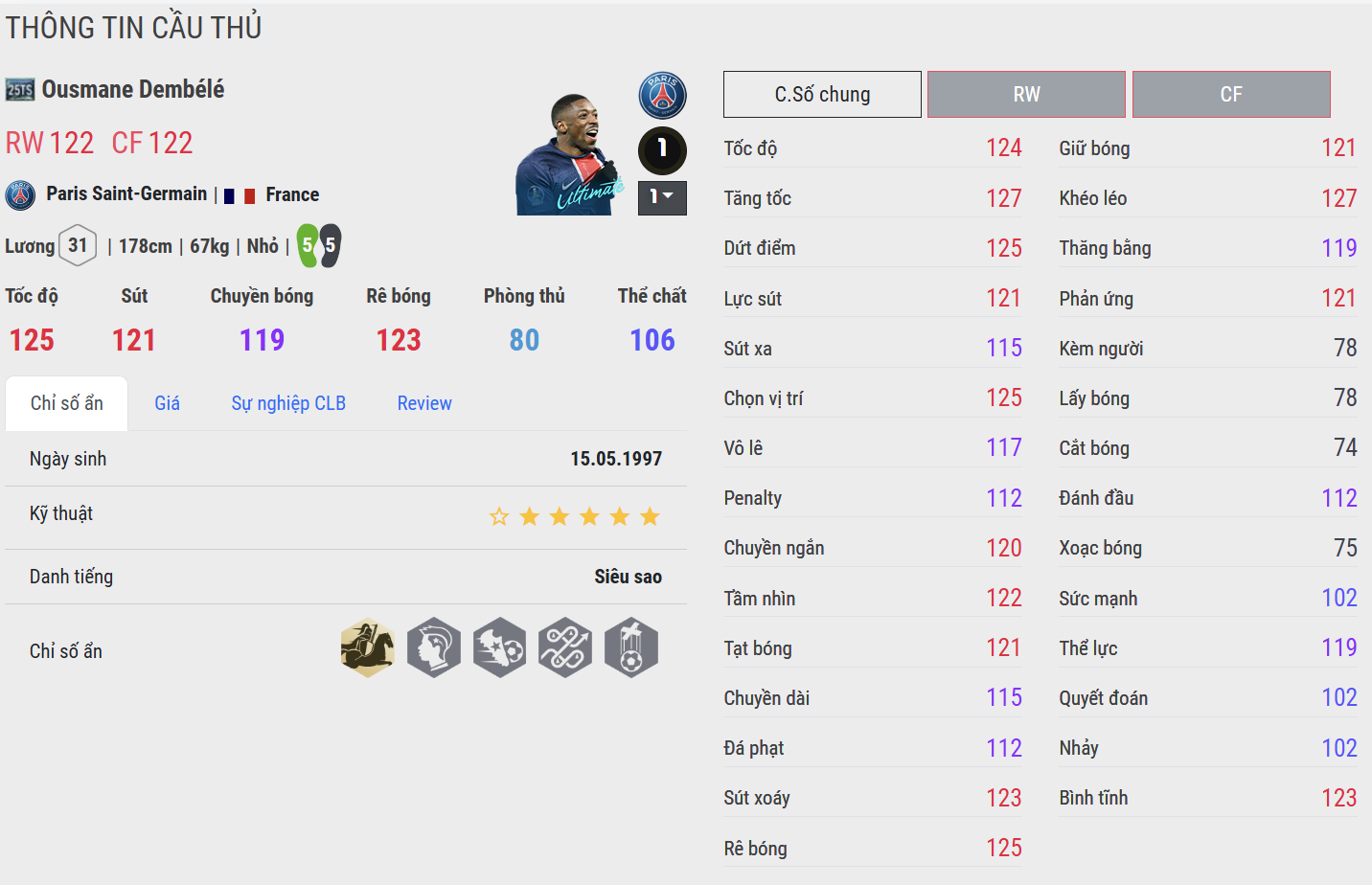 Ousmane Dembélé 25TS là mẫu CAM hiện đại với tốc độ và khả năng tạo đột biến cực kỳ cao. Dembele có thể bứt tốc, rê bóng và tạo ra những pha xử lý khó đoán nhờ khả năng dùng hai chân tốt. Trong thực chiến, anh mang lại sự bùng nổ và phù hợp với lối chơi tốc độ, chuyển trạng thái nhanh.