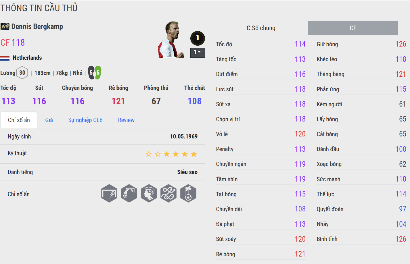 Huyền thoại người Hà Lan mang đến phong cách chơi tinh tế, với khả năng xử lý gọn gàng và những cú dứt điểm lạnh lùng. Bergkamp WS phù hợp với lối đá thiên về nghệ thuật và tính hiệu quả.
