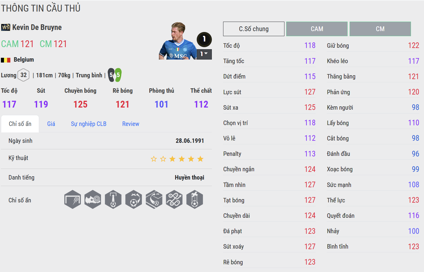 Đứng đầu danh sách là De Bruyne WS – mẫu CAM toàn diện bậc nhất. Với tầm nhìn thiên tài, khả năng chuyền bóng sát thương và những cú sút xa uy lực, KDB WS luôn là quân bài chủ lực giúp HLV mở khóa mọi hàng phòng ngự.
