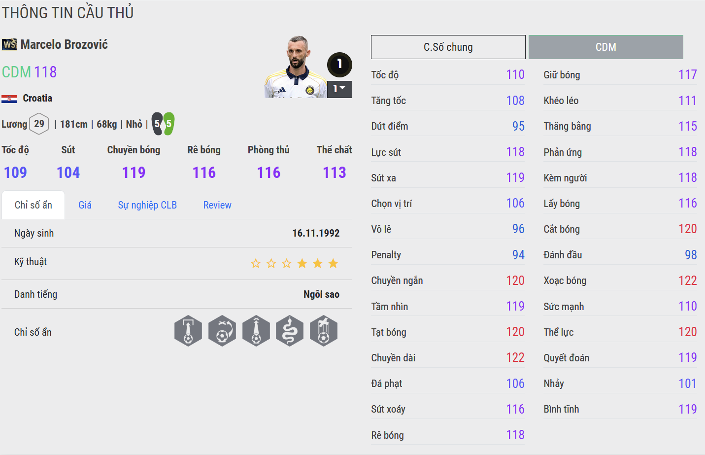 Brozović WS mang đến nền tảng thể lực dồi dào, pressing liên tục và khả năng phát động nhanh bằng các đường chuyền dài xuyên tuyến. Anh rất hợp meta pressing/transition: giành lại bóng rồi lập tức châm chuyền cho tiền đạo chạy chỗ. Nếu bạn chơi tempo cao, Brozo là lựa chọn đáng tiền để quấy rối đối phương và tạo đột biến từ tuyến giữa.