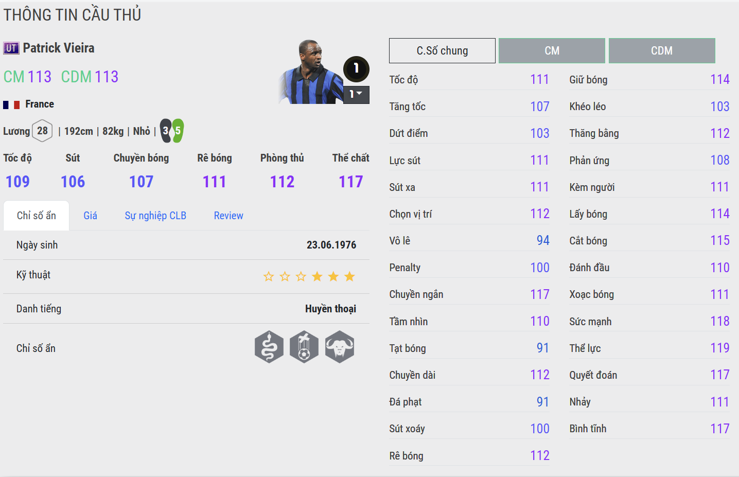 Vieira UT là định nghĩa chuẩn mực của một CDM hiện đại. Anh sở hữu thể hình lý tưởng, sải chân dài, khả năng đánh chặn và tì đè cực mạnh. Trong gameplay, Vieira tạo ra sự an tâm tuyệt đối nhờ khả năng bao sân rộng và giữ vị trí ổn định, luôn là tấm lá chắn vững chắc trước hàng phòng ngự.