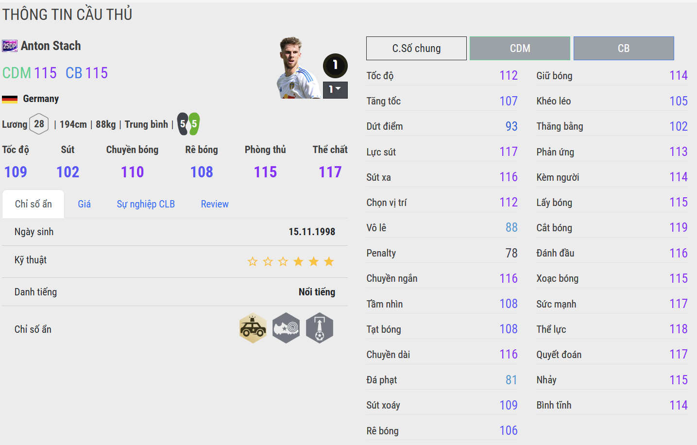 Các trung vệ 25DP không chỉ sở hữu bộ chỉ số phòng ngự vững chắc với khả năng tì đè, cắt bóng và không chiến ấn tượng, mà còn có sự điềm tĩnh và kinh nghiệm trong từng pha xử lý. Họ không cần quá hào nhoáng, nhưng luôn là chốt chặn đáng tin cậy, giữ vững thế trận và truyền cảm hứng cho toàn đội. Sở hữu một trung vệ 25DP trong đội hình đồng nghĩa với việc bạn có trong tay trái tim thép của hàng thủ – biểu tượng của sự tận tụy và ổn định trong mọi trận đấu.